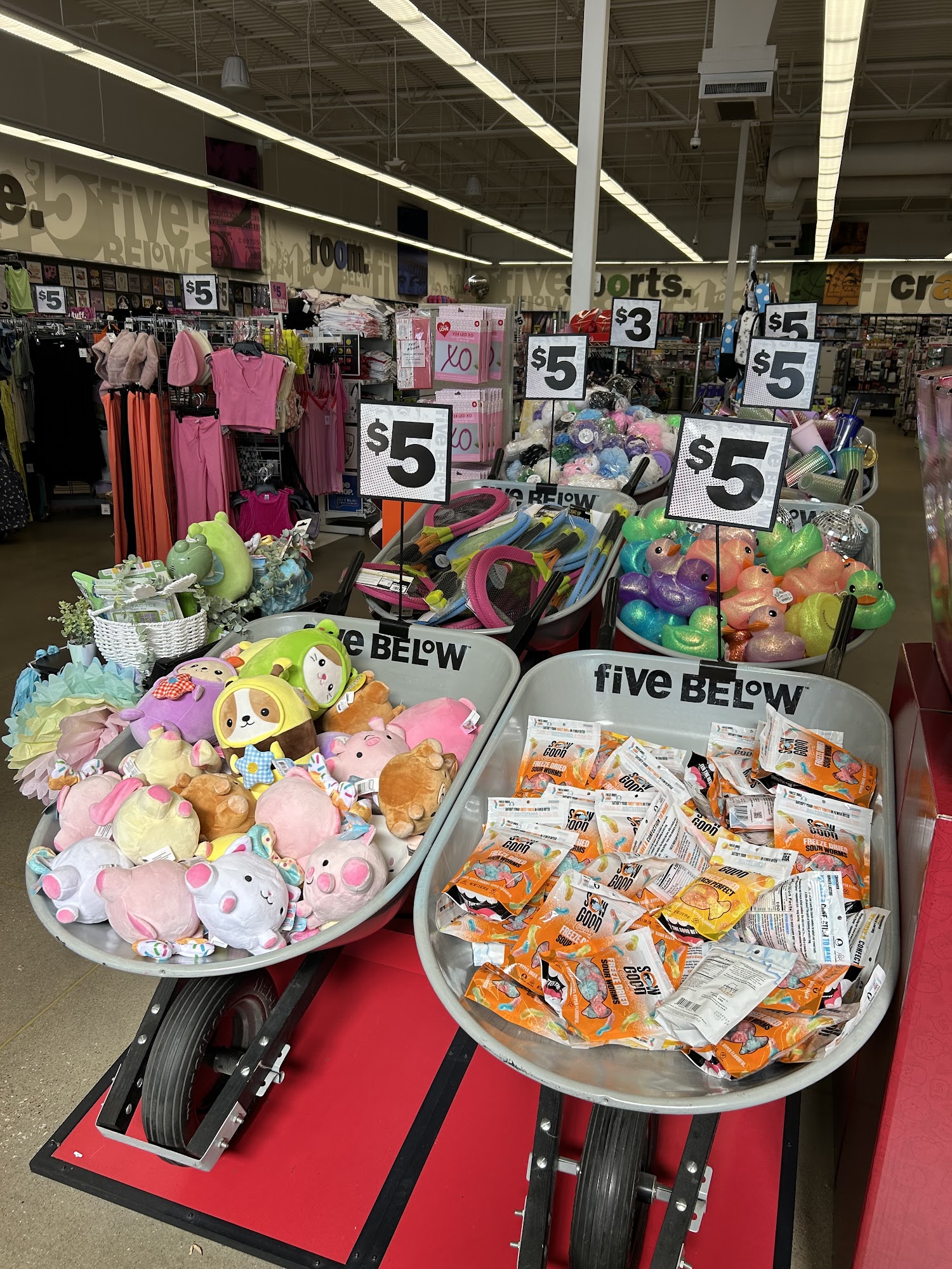 Five Below is a popular high-growth retailer that offers a wide variety of products mainly priced between $1 and $5, with some items in the Five Beyond Shop priced beyond $5. The store is known for its fun and vibrant shopping experience, filled with trendy, high-quality items that appeal to tweens, teens, and families. Customers can find everything from toys, board games, and summer pool items to lawn games, electronics, and home or office knickknacks. Many reviews highlight the store's cleanliness and organization, making it easy to browse and find interesting items. Shoppers appreciate the variety and affordability, especially for candy, sodas, and toys, making it a great place to say "yes" to new and cool stuff. Although some find the store small and note that certain electronics are above $5, the overall experience is positive, with friendly staff and a fun atmosphere. It is a place where families and friends can explore and discover entertainment, gifts, and everyday items, creating a lively and enjoyable shopping environment.