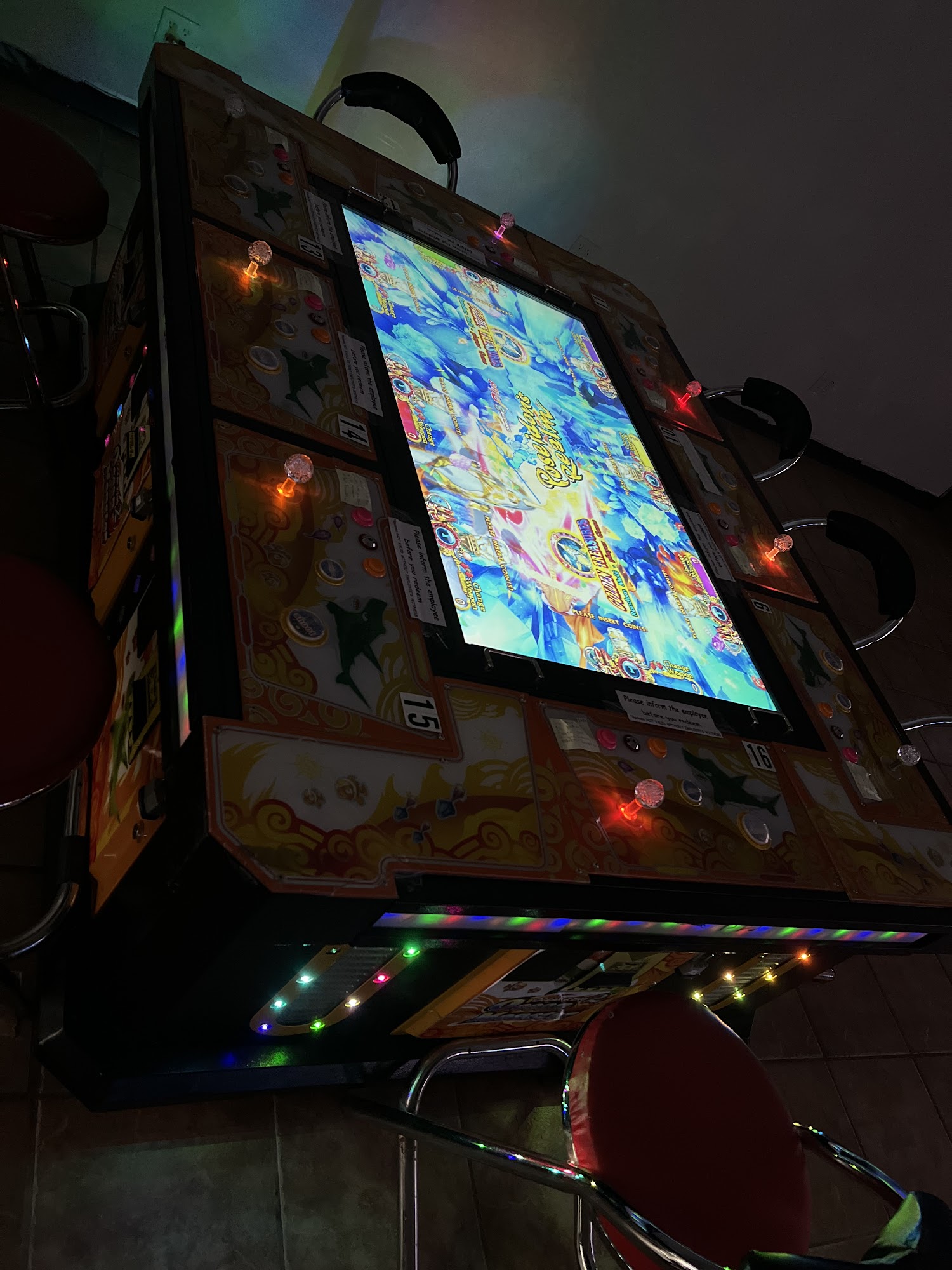 Fish table, magic city, ultrapanda, etc. Stays open 24 hrs. No smoking. Very chill place. You gotta play to stay. Attendants are all super cool. If they have it you can get 1 snack and 1 drink while you play per customer. Very clean, the patrons are all just regular working folks so not much riff raff to contend with.