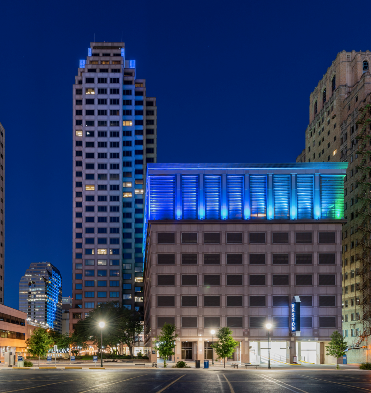 Weston Centre is the premiere office building in downtown San Antonio, and features classic post-modern architecture with elegantly finished common areas and a dramatic grand lobby. Locally owned and managed, Weston Centre has consistently reinvested in upgrades and new finishes over the years that reflect a level of attention to detail rarely found in other properties. Nine-foot ceilings and abundant natural light provide inviting openness on every floor. Other premium features that are standard at Weston Centre throughout the building include nine-foot, solid-core African mahogany doors, a tegular ceiling tile system, high quality carpet and LED lighting.