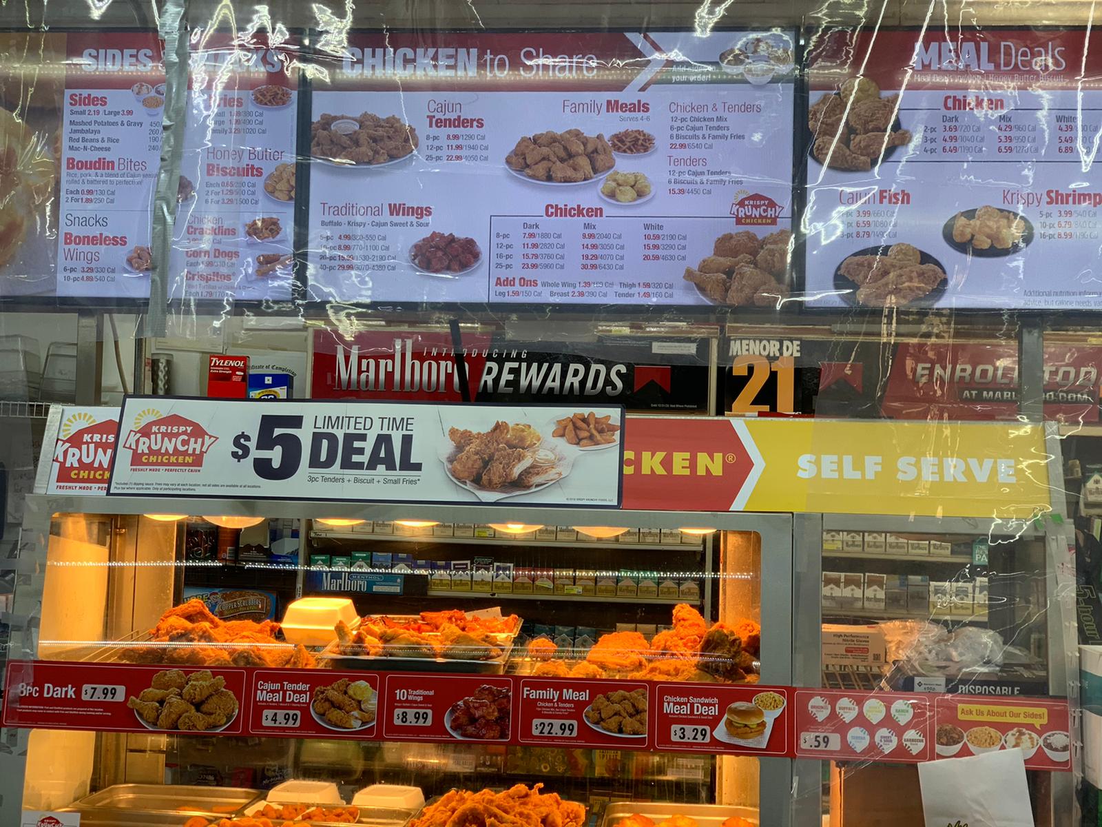This small place has every thing you would want in a convenient store. The staff were friendly and welcoming. They just fried up some chicken. It was fresh & tasty, but a little heavy on salt. Plus, it's a little high in price. However, I would go back to try something else on the menu