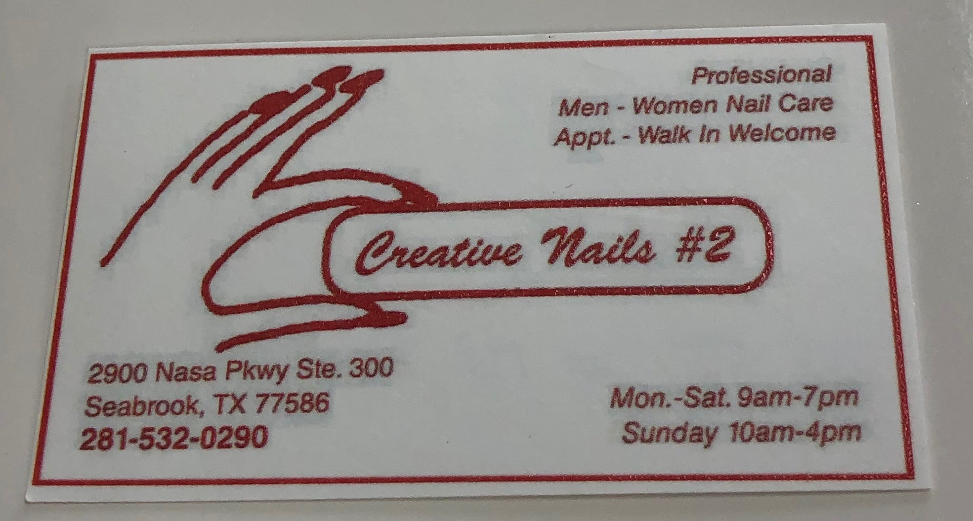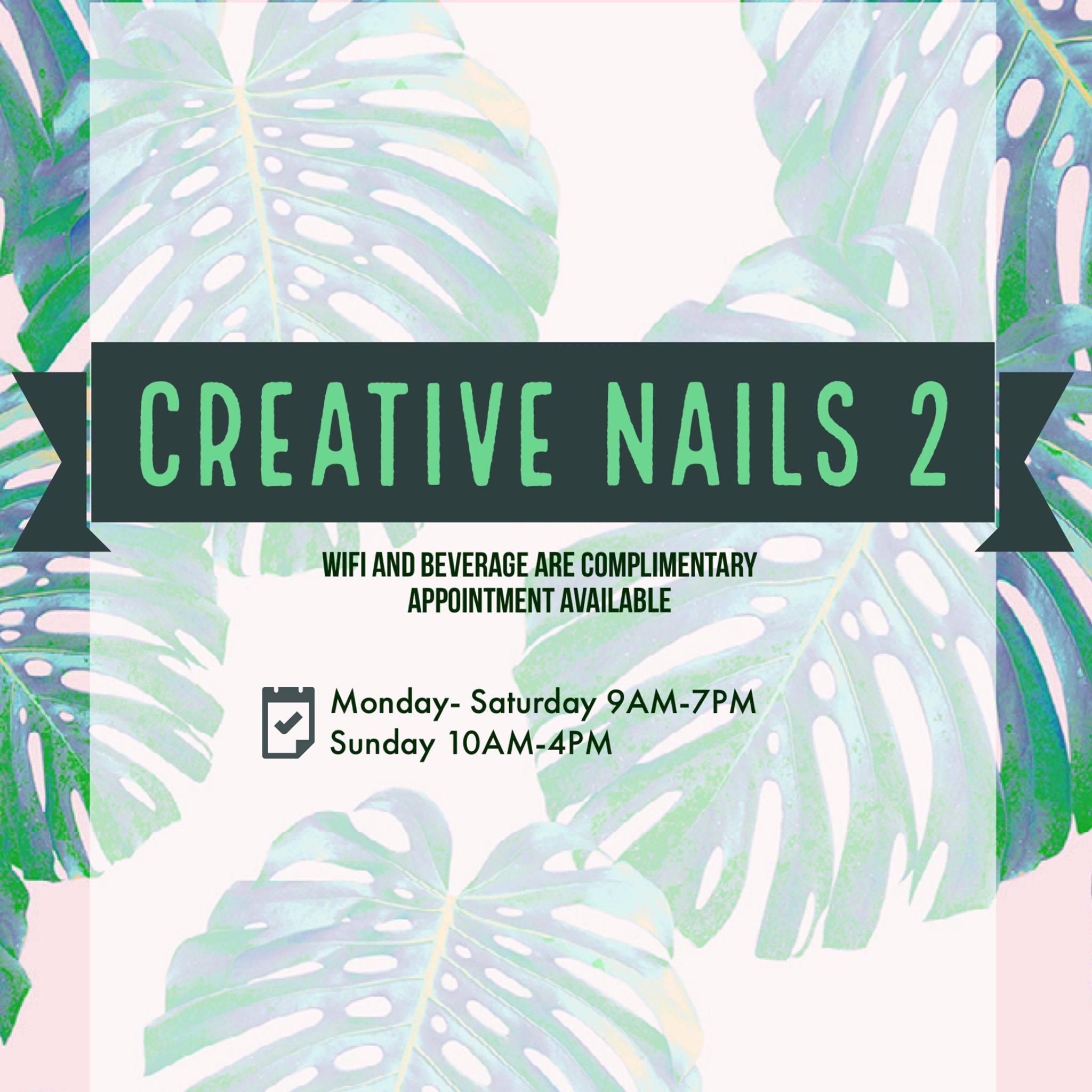 Creative Nails 2 Seabrook is my favorite nail salon. The quality of service and products they use are top-notch. I always leave feeling pampered.