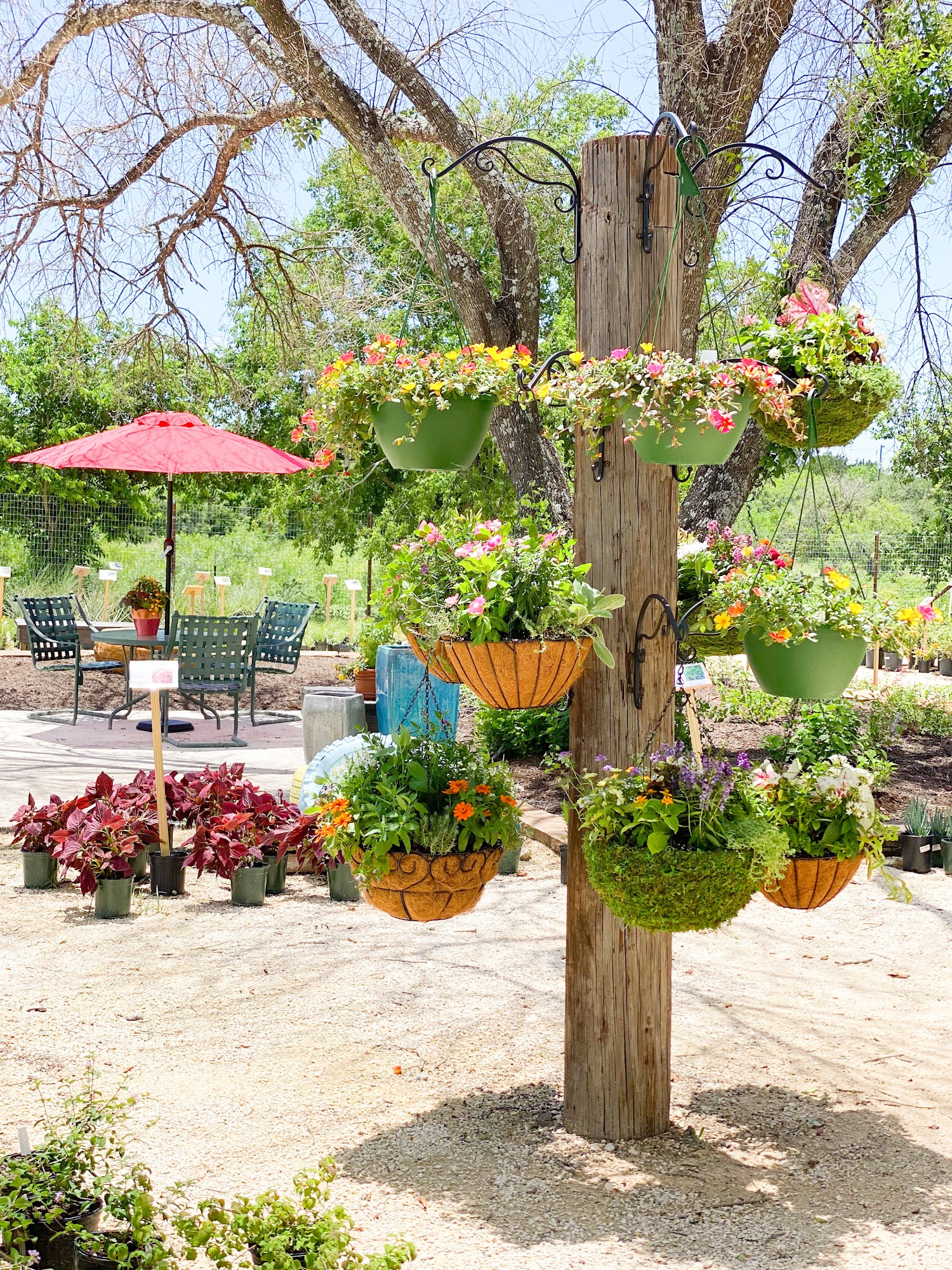Garden Center specializing in Native and Adaptive plants for Central Texas. High quality trees, perennials, colorful annuals, organic vegetable starts, medicinal and culinary herbs, succulents, air plants, and tropicals. Shop our large gift shop with gardening accessories, windchimes, terrariums, coffee, candles, spices, children's toys, fairy garden items, and locally made products. Landscape professional on hand to help you with design and plant choices. Plant. Water. Come Grow with us!
