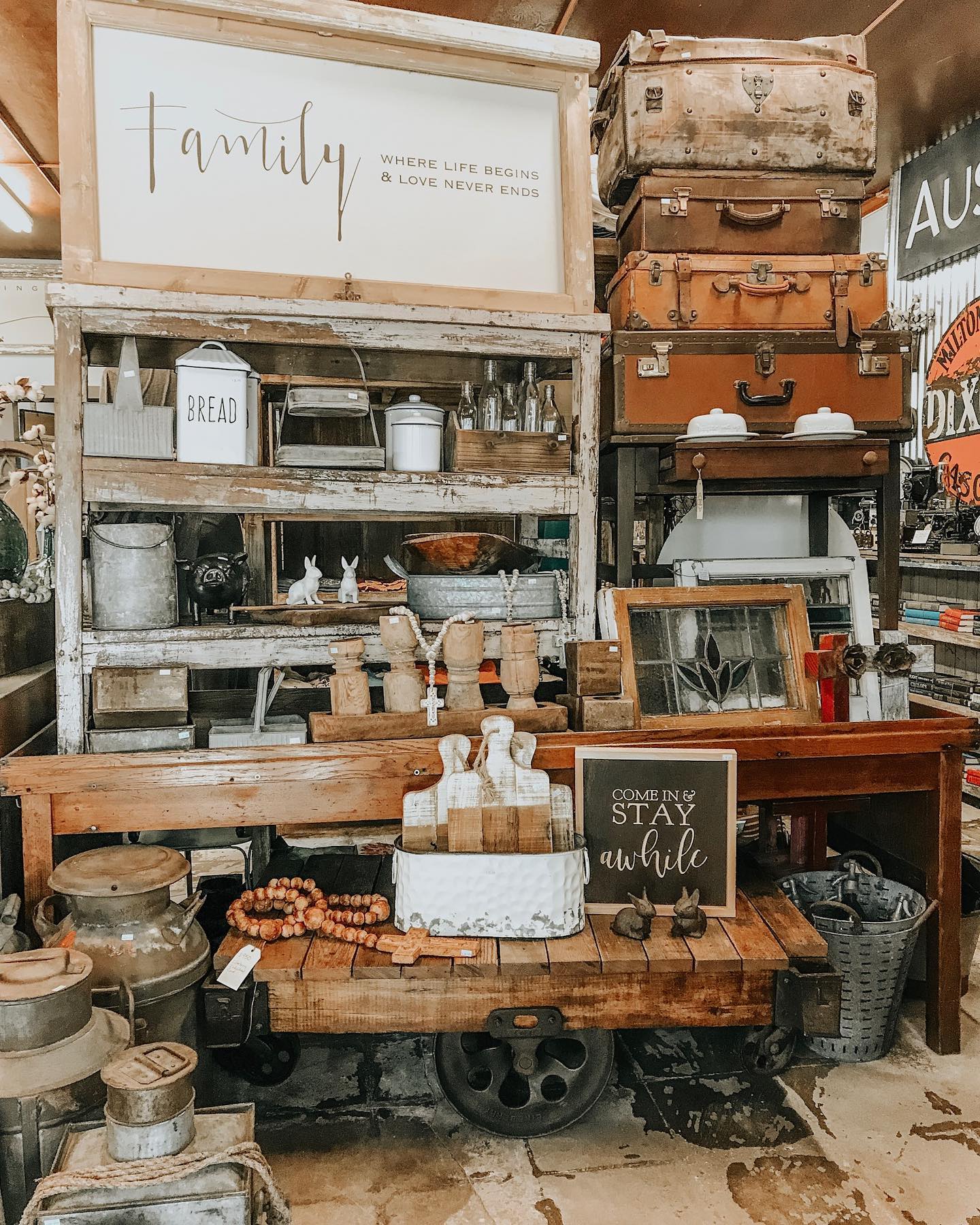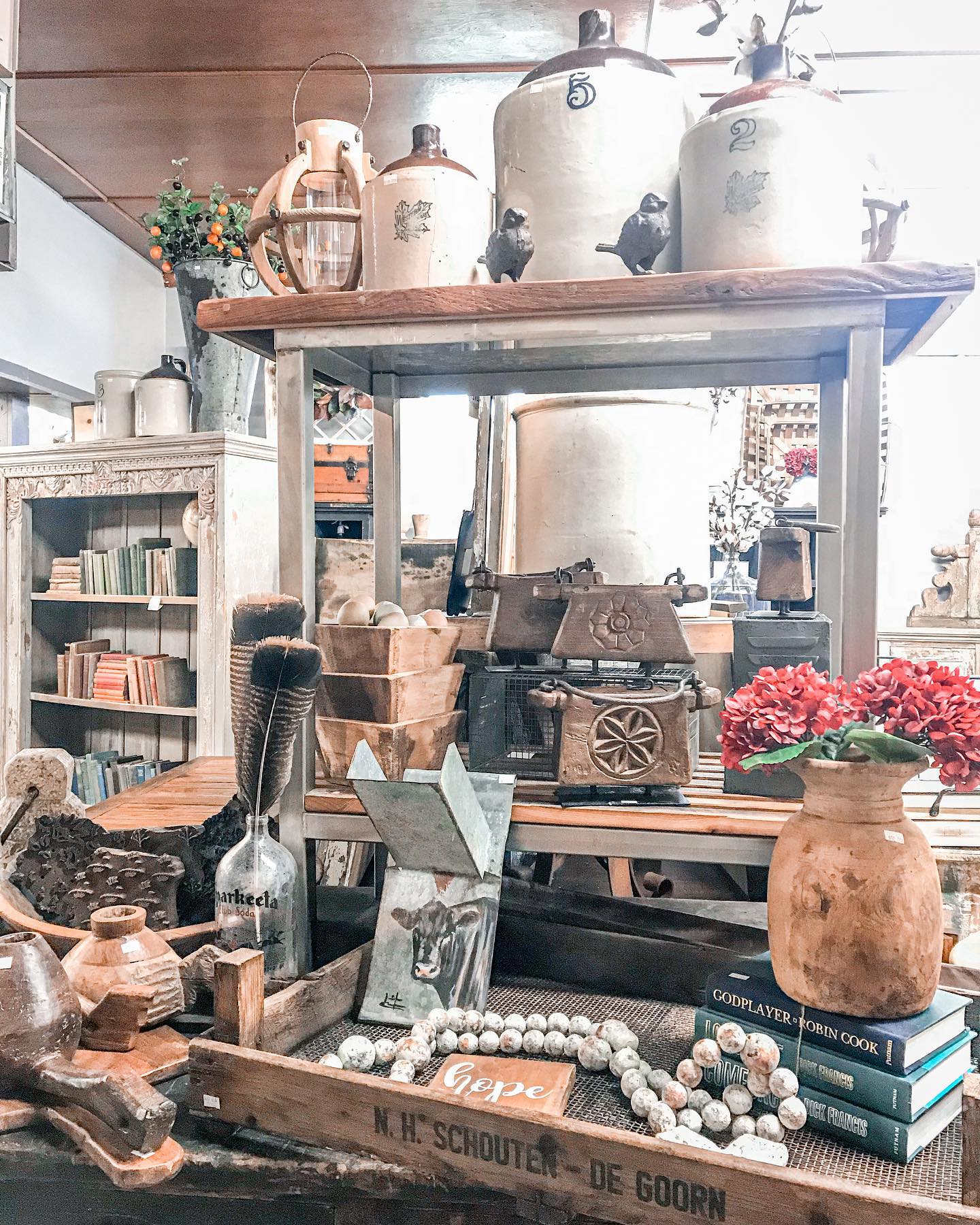 Very cute and rustic pieces. Your typical dough bowls and sugar molds along with beautiful furniture and cool decor.