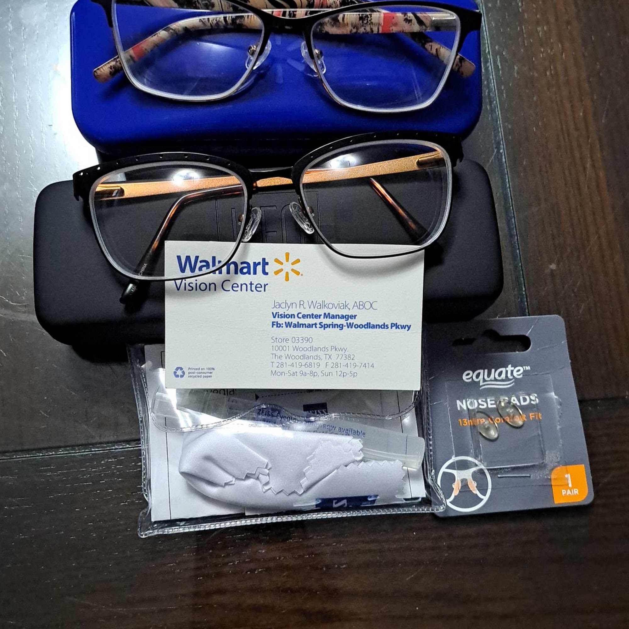 First time using Walmart Vision and extremely pleased with new glasses and their prices are VERY competitive. Jaclyn at the Woodlands Pkwy location was very helpful