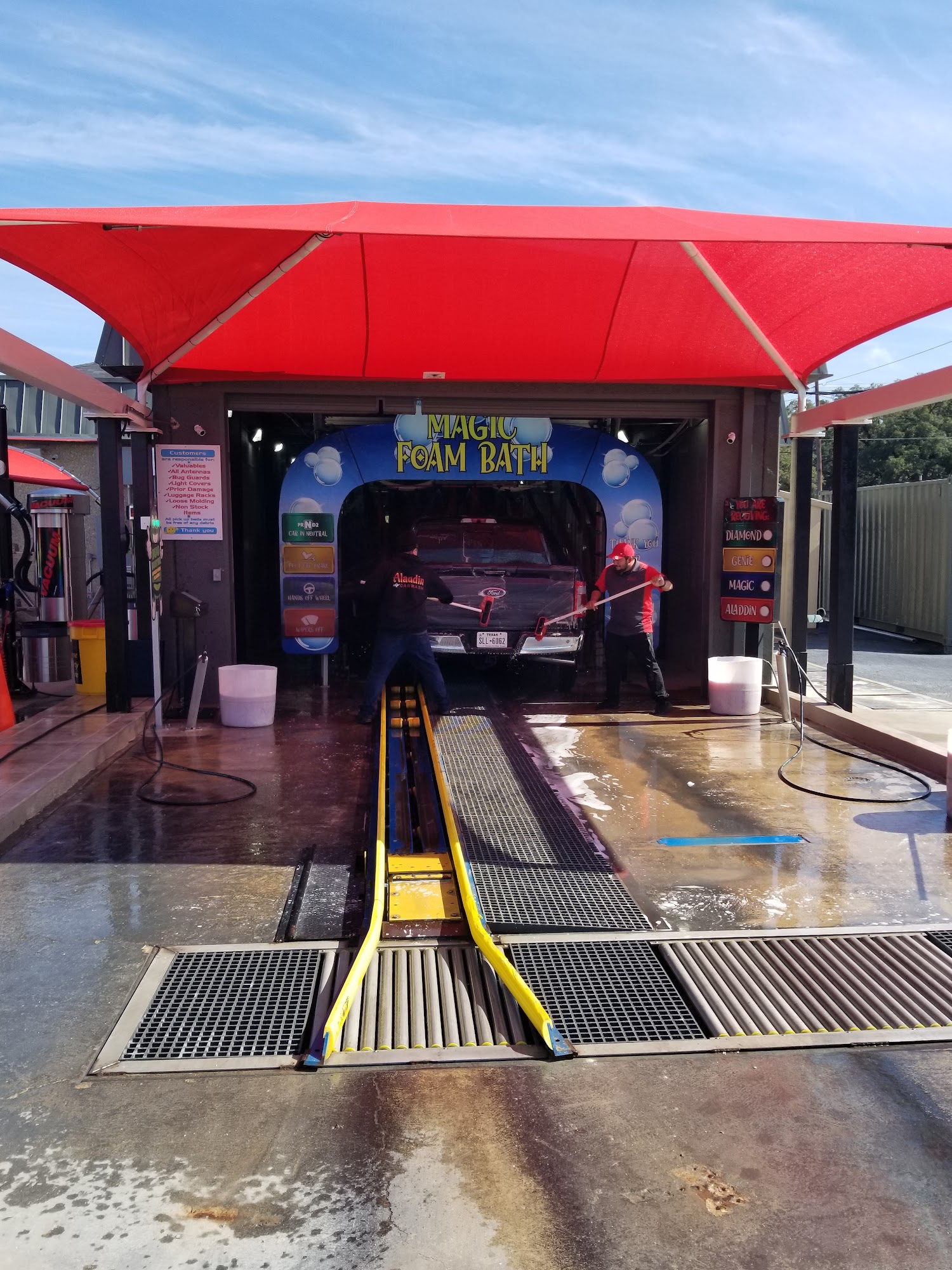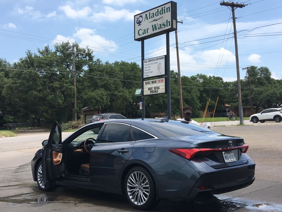 Aladdin Car Wash is a very convenient family business with nice, friendly, and highly committed staff. The employees provide a high quality service, performing an actual good scrub on vehicles before the wash, which is a game changer. They reach hard to reach spots for a thorough and more complete cleaning. Their detergent keeps the car shinier and reduces water spots. The vacuums have very great suction, and towels and window spray are always ready. The facility has well-spaced areas and a very clean bathroom. It is a highly recommended place for a quality car washing experience at a fair price.