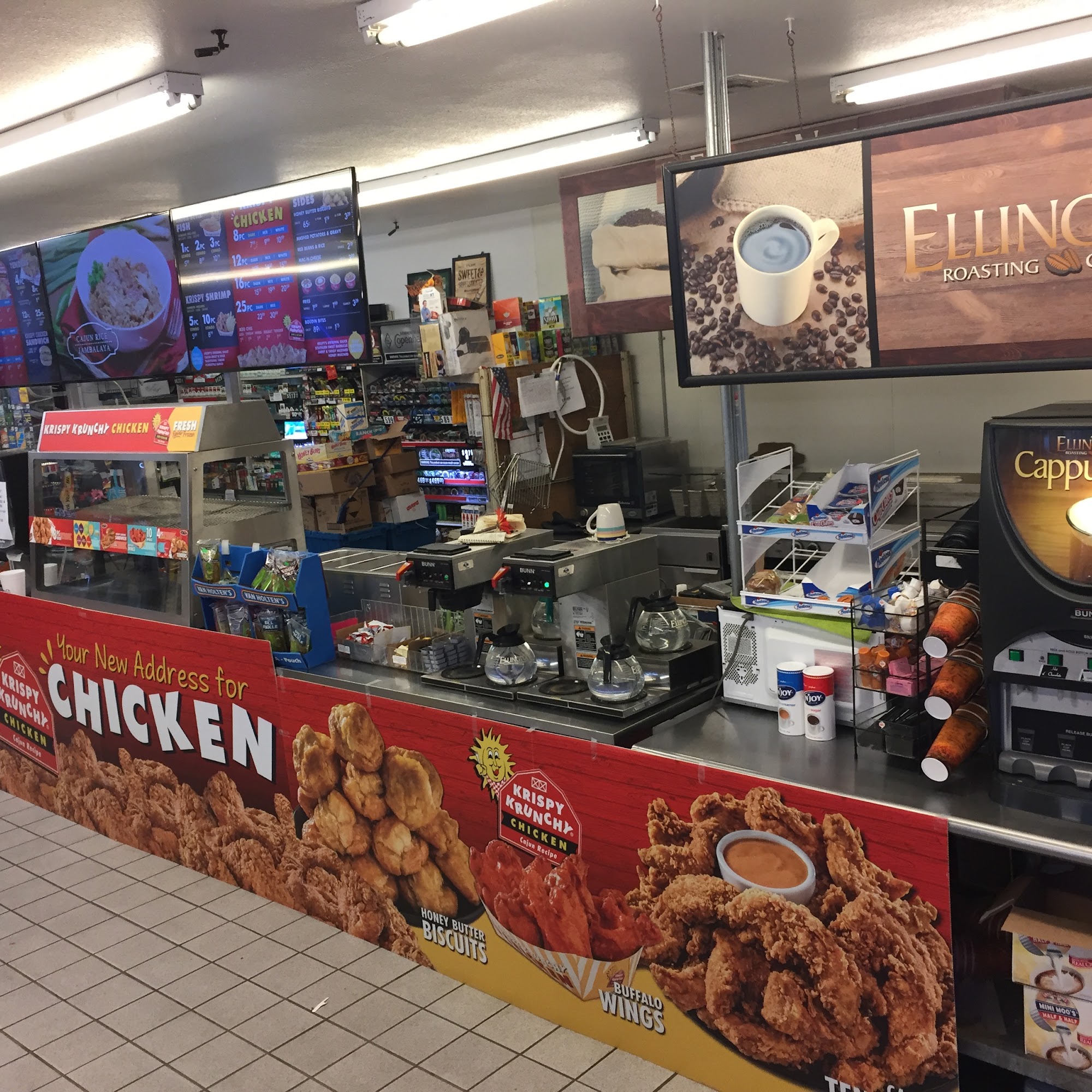 Excellent Customer Service. Plenty of big truck parking, nice quiet lot. The Krispy Krunchy Chicken is excellent. They have a large selection of items on the shelf.