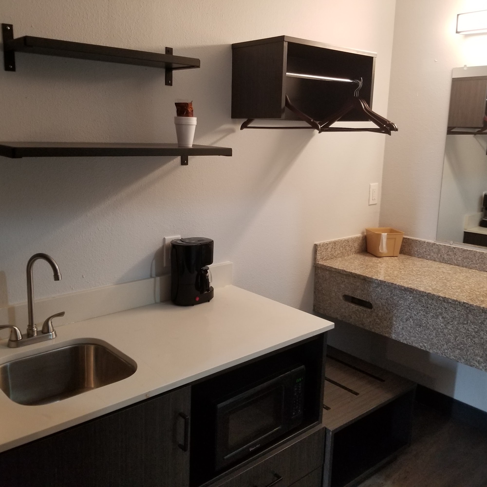 Studio 6 Waco, TX - Downtown - Baylor offers a convenient and affordable stay for travelers and families. The hotel has two sides: the back side is noisier with activity and cars, while the front side is quieter. Rooms are clean, spacious enough for a family of four, and pet-friendly, with a small kitchen area that includes a refrigerator, microwave, and sink, but no stove. Guests appreciate the friendly and understanding staff, especially considering the pet-friendly policy. The hotel is located close to Baylor and I-35, providing easy access, and feels safe despite initial concerns about noise and safety. Some reviews mention minor issues like cockroaches and unauthorized room entries, but management responds quickly to concerns. Overall, it is seen as a quiet, clean, and comfortable place to stay, especially for those needing a temporary home or traveling through Waco. The area has nearby stores and restaurants, making it a practical choice.