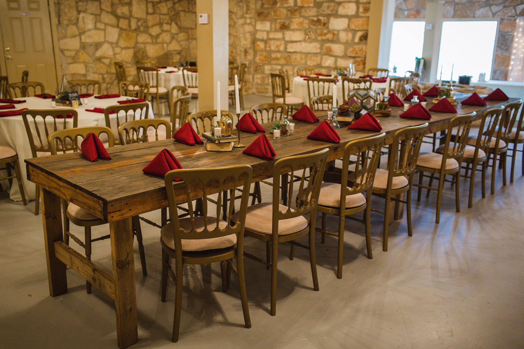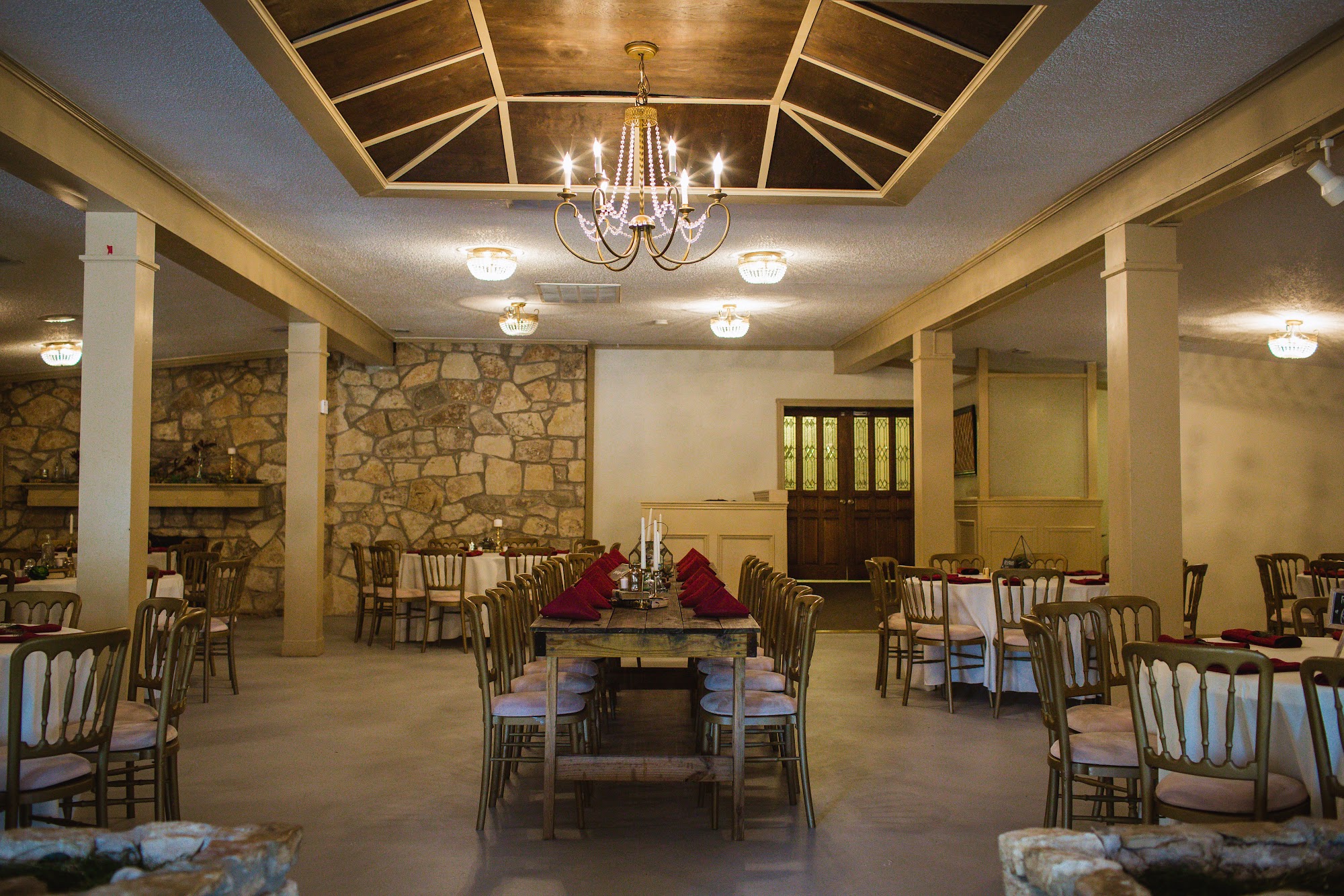 Cypress Falls Event Center is a picturesque wedding venue located in the charming town of Wimberley. This all-inclusive destination offers a variety of amenities, including a creekside bar, tavern, pool, hotel, and townhomes, making it an ideal choice for couples who want to host a weekend-long celebration with their loved ones. The venue's coordinators, Ashlea, Sherry, Ally, and Sarah, have consistently received praise for their exceptional service and attention to detail. They work tirelessly to ensure a stress-free planning process and seamless execution on the wedding day, going above and beyond to address any concerns or needs that may arise. Guests have raved about the venue's charm and character, as well as the friendly and accommodating staff. The newly updated bridal suite has also been described as "gorgeous," providing a luxurious space for the couple to prepare for their special day. Overall, Cypress Falls Event Center is a premier wedding destination that offers couples the opportunity to create a truly unforgettable experience for themselves and their guests. With its stunning natural setting, comprehensive amenities, and dedicated coordinators, it's no wonder that this venue has become a favorite among couples seeking the perfect place to tie the knot.