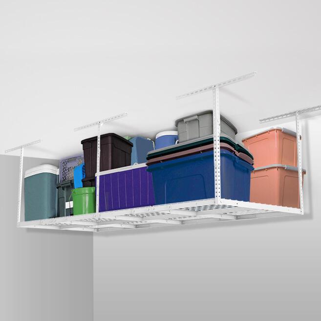Garage storage solutions. We provide overhead storage racks and other garage shelving or organization type items for Utah garage customers. Wall shelves and wall track systems. We provide pricing that includes installation for our shelving and our rack systems.