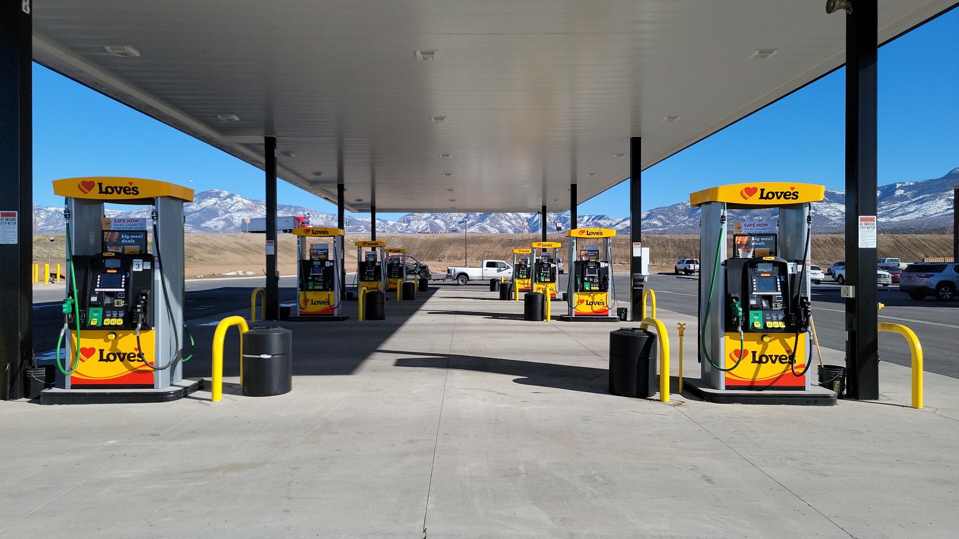Love's Travel Stop is a great and popular location for truckers and travelers to fuel up and pull over. It is noted for its low gasoline prices. The store is described as beautiful, very clean, organized, and spacious. It has clean public restrooms, showers, and laundry facilities. The place is calm and has plenty of seating. It offers good food, including options from Taco Johns, along with fresh fruit, lots of different coffee options, and espresso shots. The staff are frequently noted as friendly, helpful, sweet, and hard workers. However, the on-site Speedco service is reported to be super slow with poor communication, causing long waits. Despite this, many customers state they will be back.