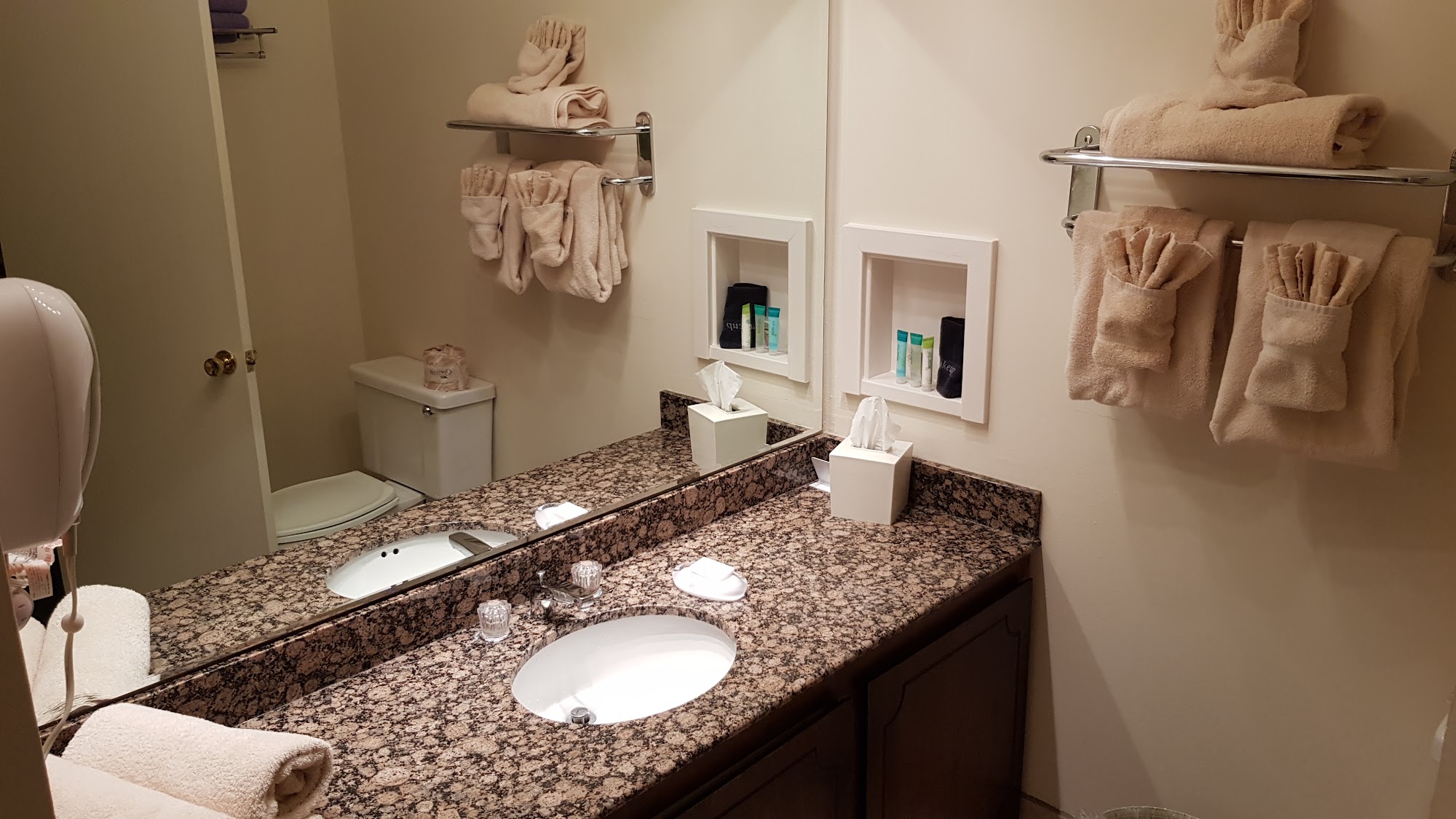 Enormous rooms, very clean. Check in staff were nice.i wish I brought my bathing suit for the hot tub! The breakfast was especially nice with omelet, pancakes or French toast cooked fresh, starting at 6 am. It's always nice to support a local business, thanks!