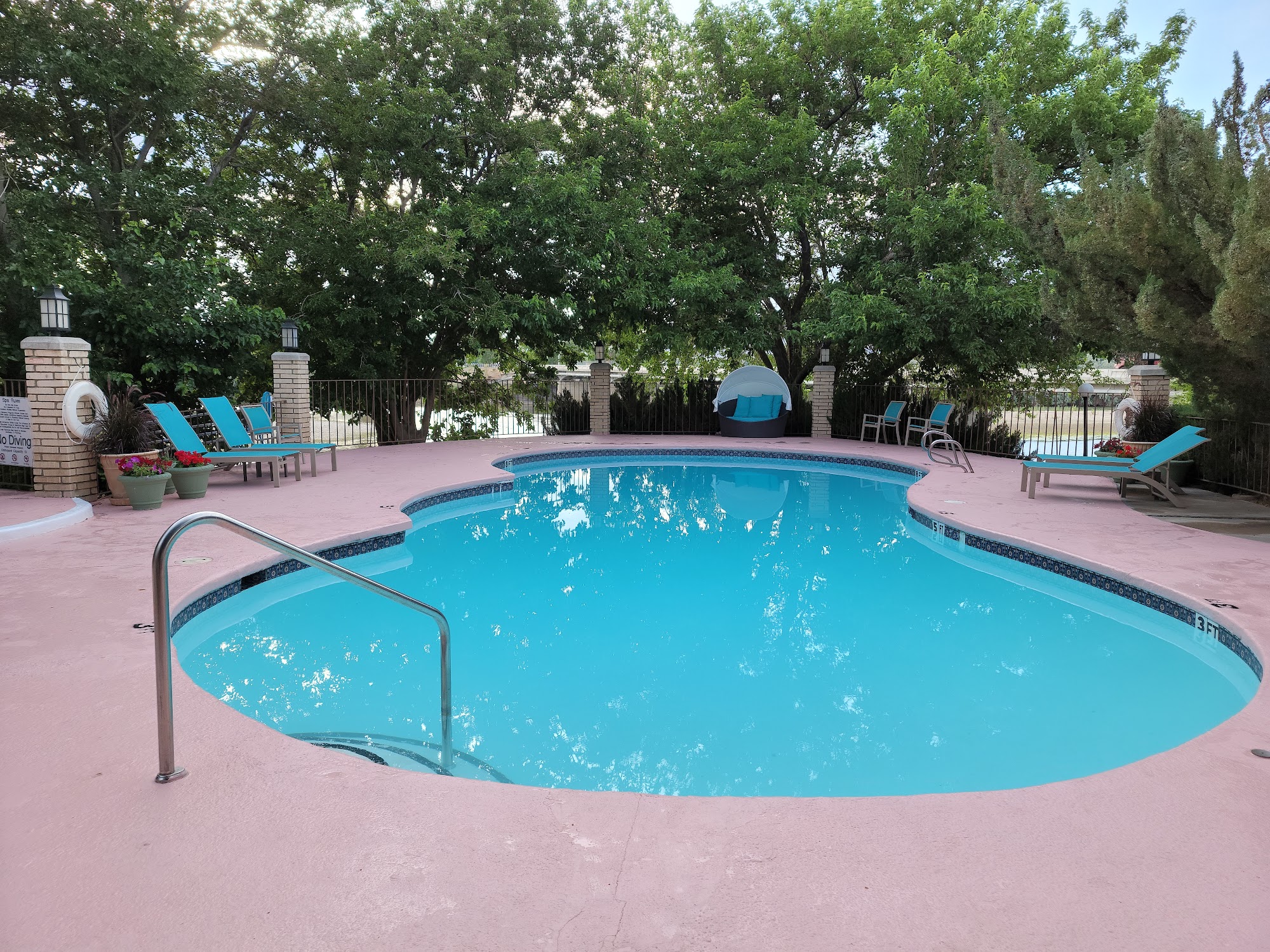 River Terrace Green River offers a comfortable and clean stay with spacious, well-appointed rooms, many featuring views of the Green River. Guests appreciate the beautiful scenery outside their rooms and the quiet, relaxing atmosphere. The property provides amenities such as an outdoor firepit with firewood, a pool, and a hot tub, adding to the relaxing experience. The staff is consistently described as friendly and helpful, making visitors feel safe and welcomed. A notable highlight is the included breakfast, which offers a good selection of fresh options like omelets, pancakes, and French toast, served early in the morning. The location is praised for its ample parking, especially for trailers, and its proximity to the river, making it ideal for outdoor activities. Although the property is older, it is well-kept and offers a lush, green oasis in the desert. Many guests recommend staying here, especially for river views and a peaceful getaway.