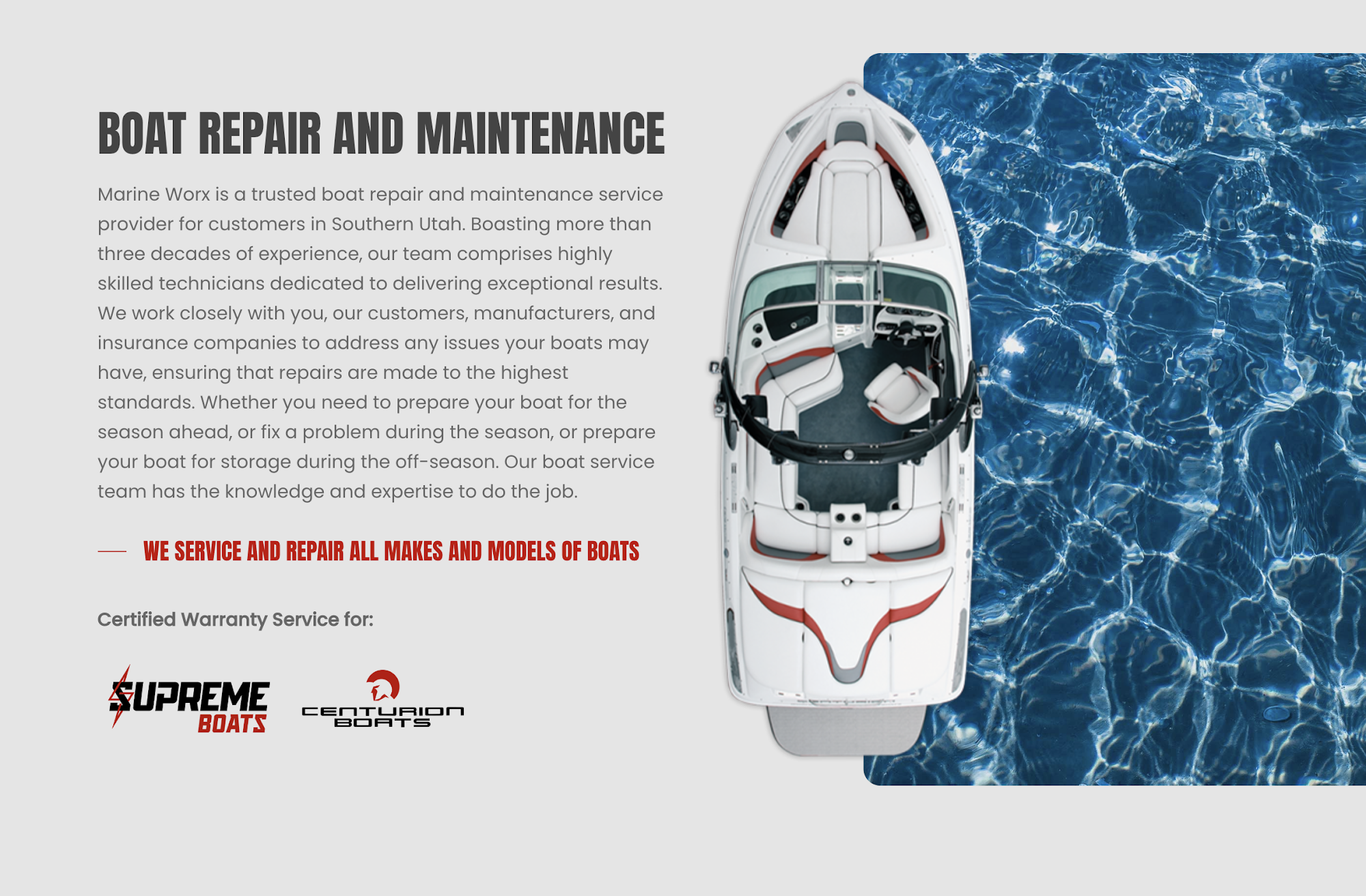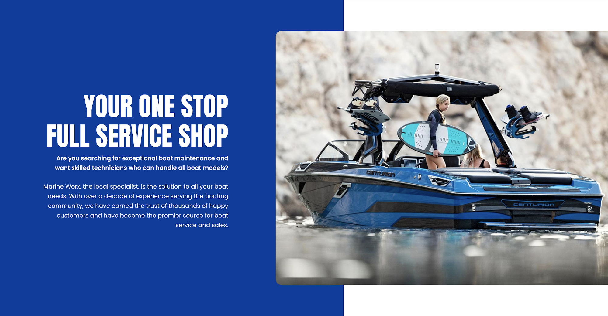 YOUR ONE STOP FULL SERVICE SHOP Are you searching for exceptional boat maintenance and want skilled technicians who can handle all boat models? Marine WorX, the local specialist, is the solution to all your boat needs. With over a decade of experience serving the boating community, we have earned the trust of thousands of happy customers and have become the premier source for boat service and sales.