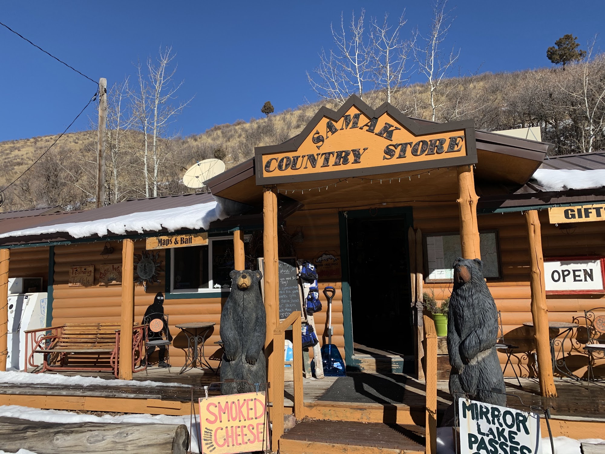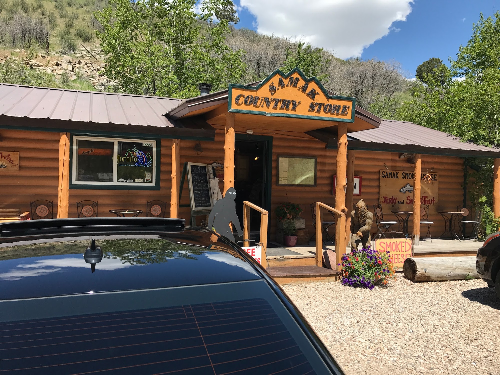 Samak Smoke House and Country Store, located on the scenic Mirror Lake Hwy, has been serving customers since 1972 and is a popular stop near the Uinta National Forest. It offers a variety of smoked products, including jerky, trout, salmon, and cheeses, with options to choose the smoke level on some items. The store also features baked goods, espresso, to-go sandwiches, local gifts, park passes, maps, beer, and camping supplies, making it a convenient spot for outdoor enthusiasts. The rustic yet clean shop has a cozy atmosphere with friendly staff who provide helpful service and a welcoming environment. Visitors appreciate the delicious homemade treats, especially the smoked cheeses and "stickies," and enjoy the chance to sample different products. Though prices can be high, many find the quality worth it. The store is a charming mountain gem, perfect for preparing for a day of fishing, hiking, or scenic drives.