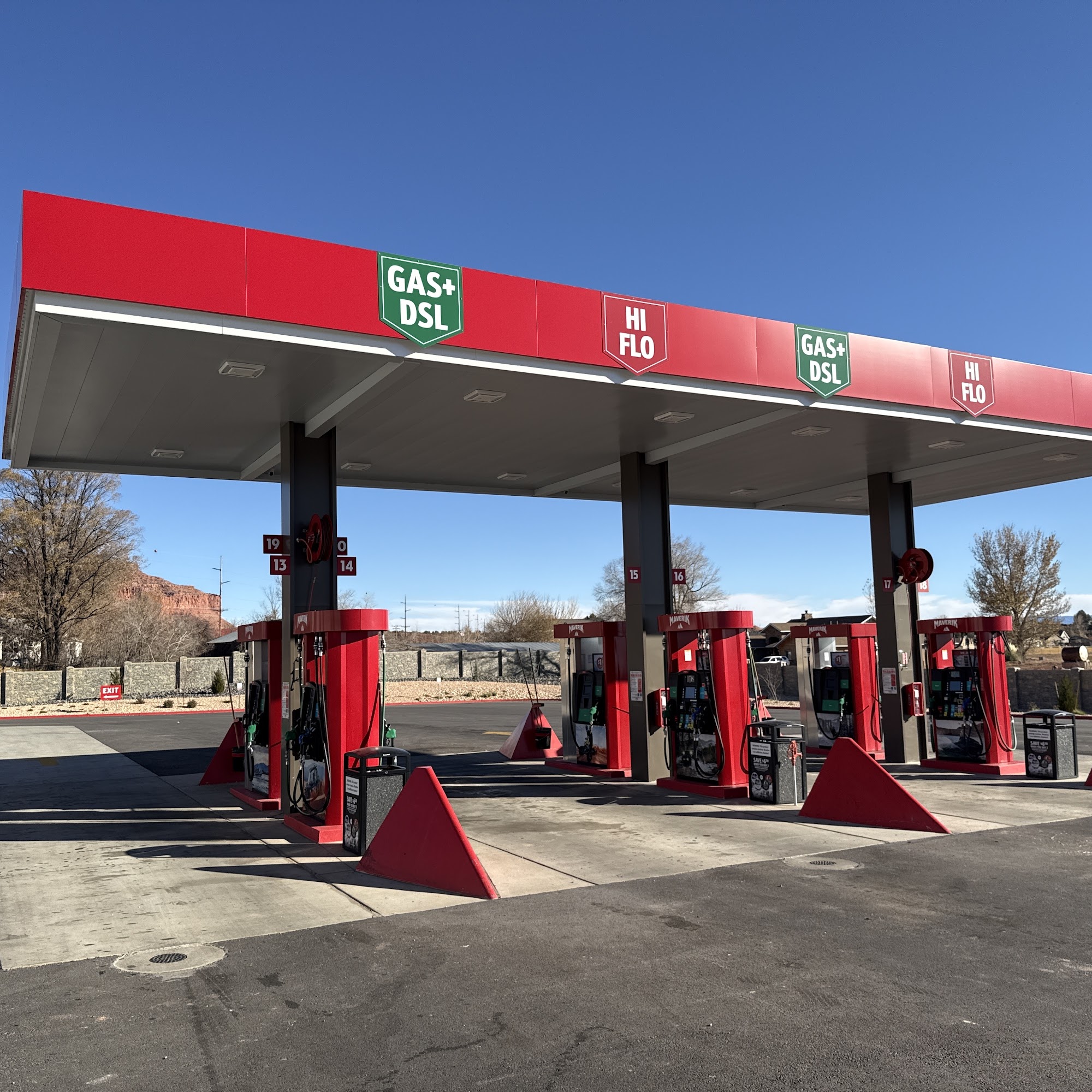 Kanab's new Maverik! Same great Maverik experience providing an instant reduction in diesel fuel costs. Nice modern floorplan and spacious restrooms with plenty of food and beverage choices inside.