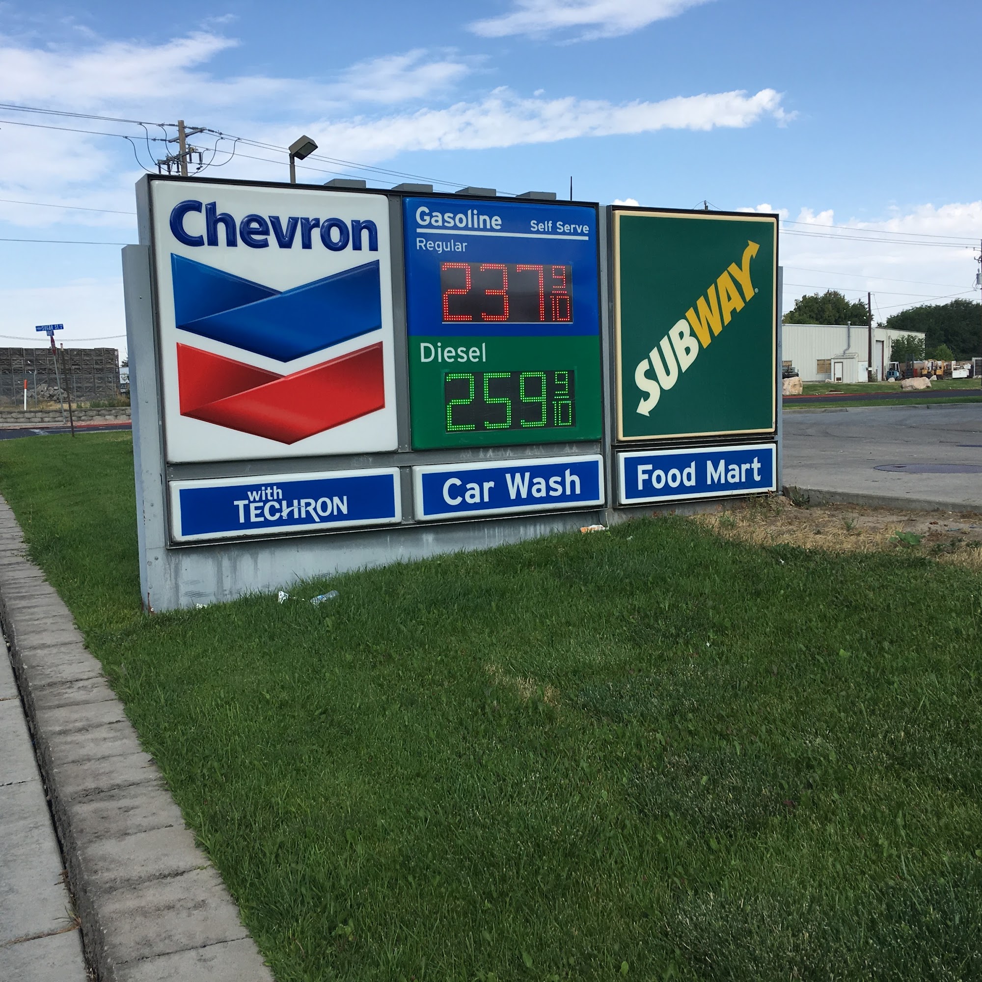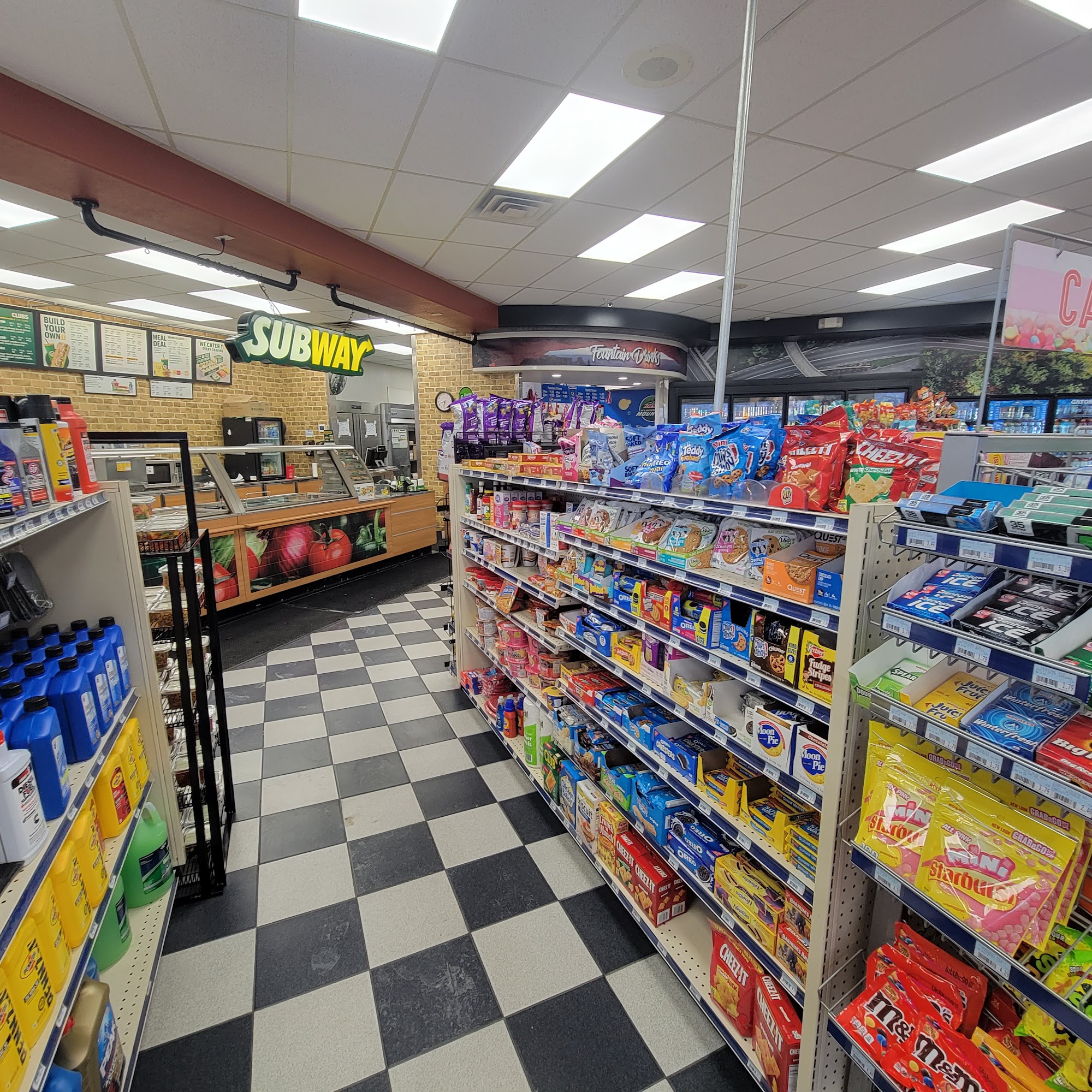 This Chevron location is consistently busy. The three employees at the counter provide incredible customer service, making customers feel welcome. The station offers a huge cooler and energy drink selection, plus Subway, hot food, FReal, Frazil, and donuts. The potato logs are amazing, crunchy, savory deliciousness. However, it is not the nicest gas station. Their car wash rarely works and they will not give your money back, so go elsewhere for a car wash.