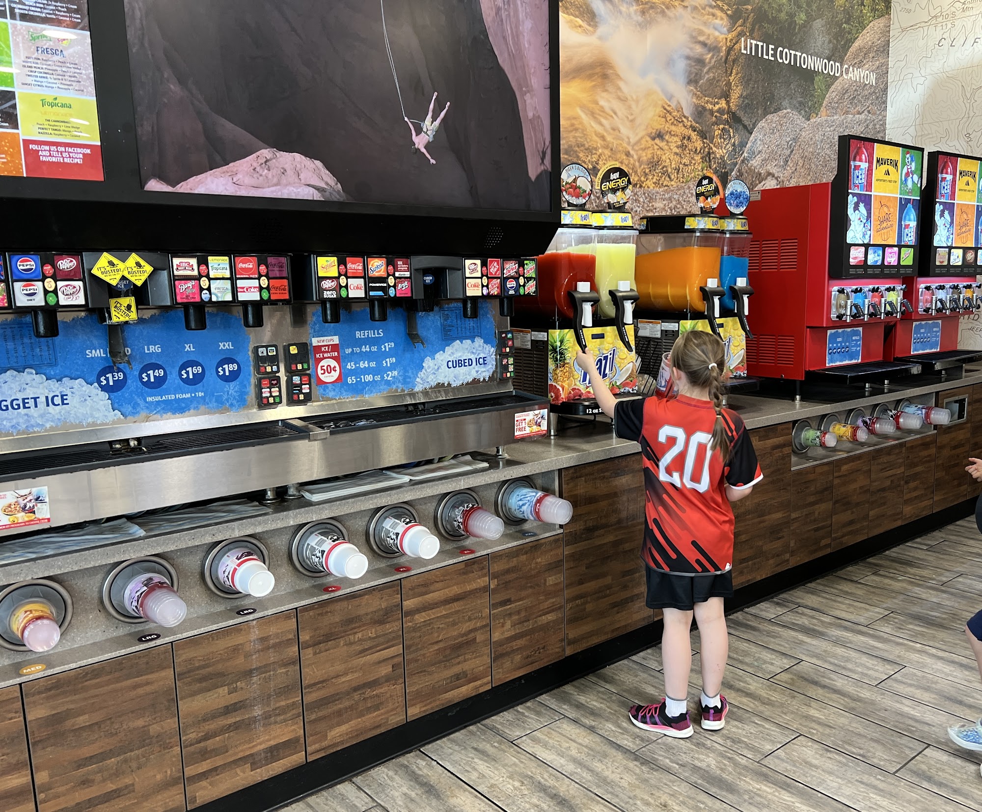 Maverik is a very convenient gas station, easy to get into from the freeway. It is noted for being clean, organized, and spacious, often with a new and nice location. Customers praise the biggest, nicest, and cleanest bathrooms. The business offers a large supply and the best selection of snacks, drinks, and fountain drinks, including great hot chocolate. It provides solid food and fun items from the Bone Fire Grill. The gas options include all three standard octanes, diesel, and ethanol-free fuel. Employees and staff are consistently described as friendly and super nice.
