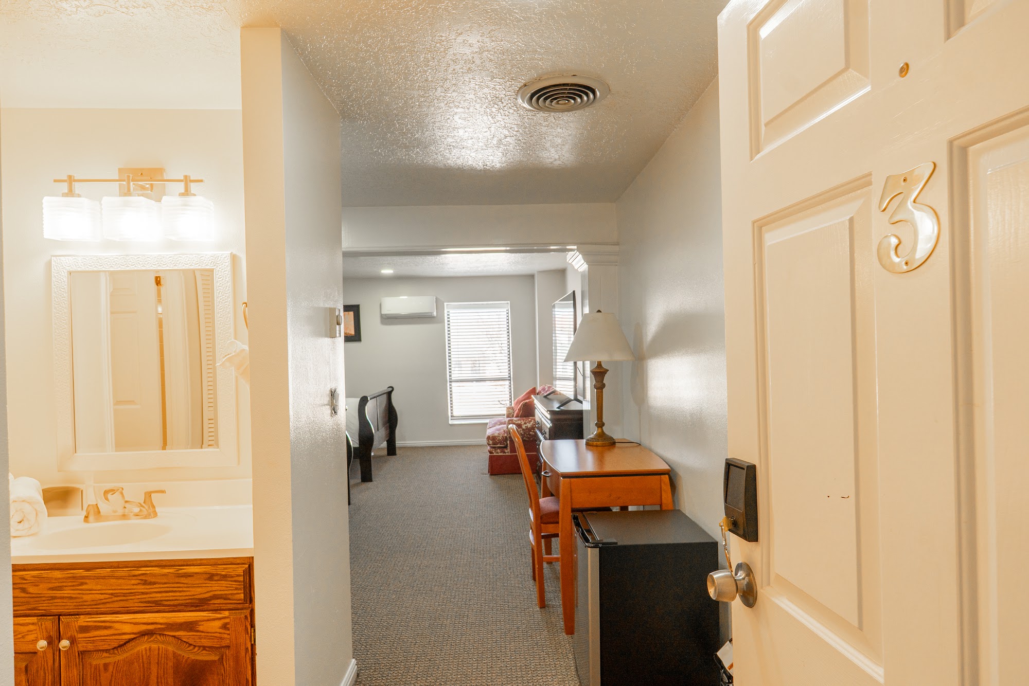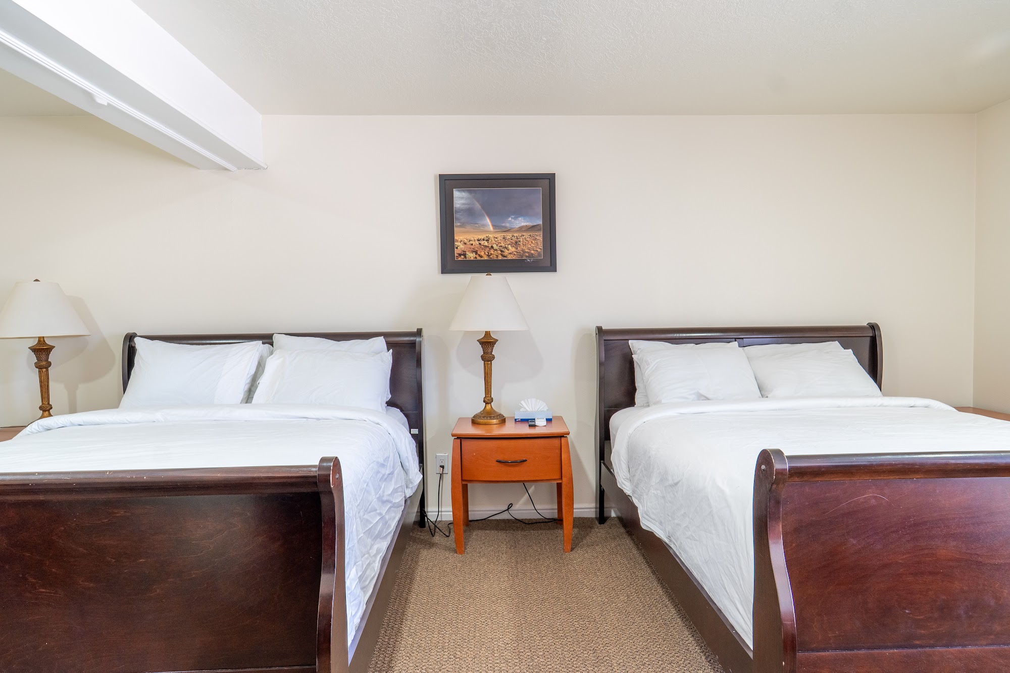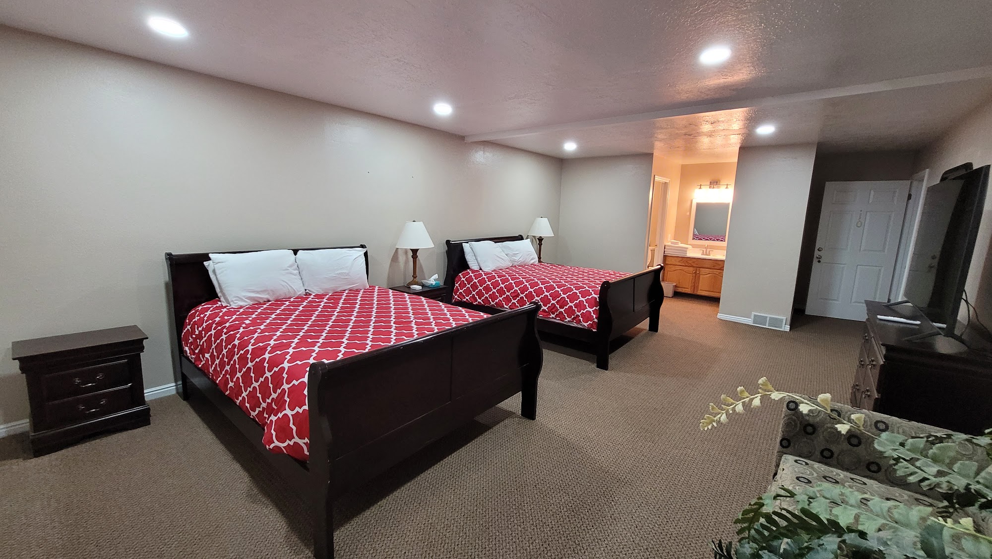 Road Creek Inn is a hidden gem in the quaint, beautiful small town of Loa. It is a perfect place for large groups, family reunions, or a stop during a road trip, offering a breath of fresh air with so much space. The accommodation provides comfortable, clean, nicely decorated, and spacious rooms with huge TVs and comfortable beds. It is great for children, with plenty of room for them to play. The shared facilities are a major highlight. There is a large, functional kitchen with everything you could need, including two refrigerators, a freezer, and plenty of seating. A wonderful little grocery store with a deli and bakery is conveniently across the street. For entertainment, there is a huge game room and a movie theater room with fun bean bag chairs, board games, ping pong, a large TV, and provided popcorn. The hosts are very responsive and accommodating. While the outside of the building appears worn down, the inside is updated and looks great. It is clean, quiet, and a wonderful value, located about 25 minutes from Capitol Reef National Park. Guests highly recommend it and often plan to return.