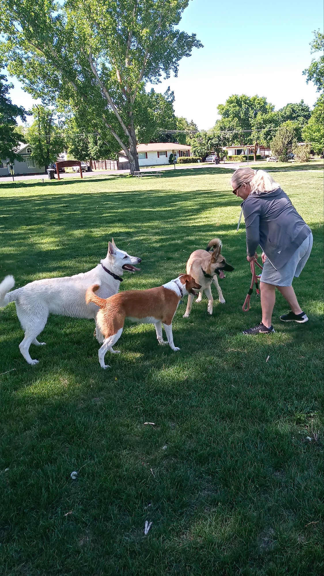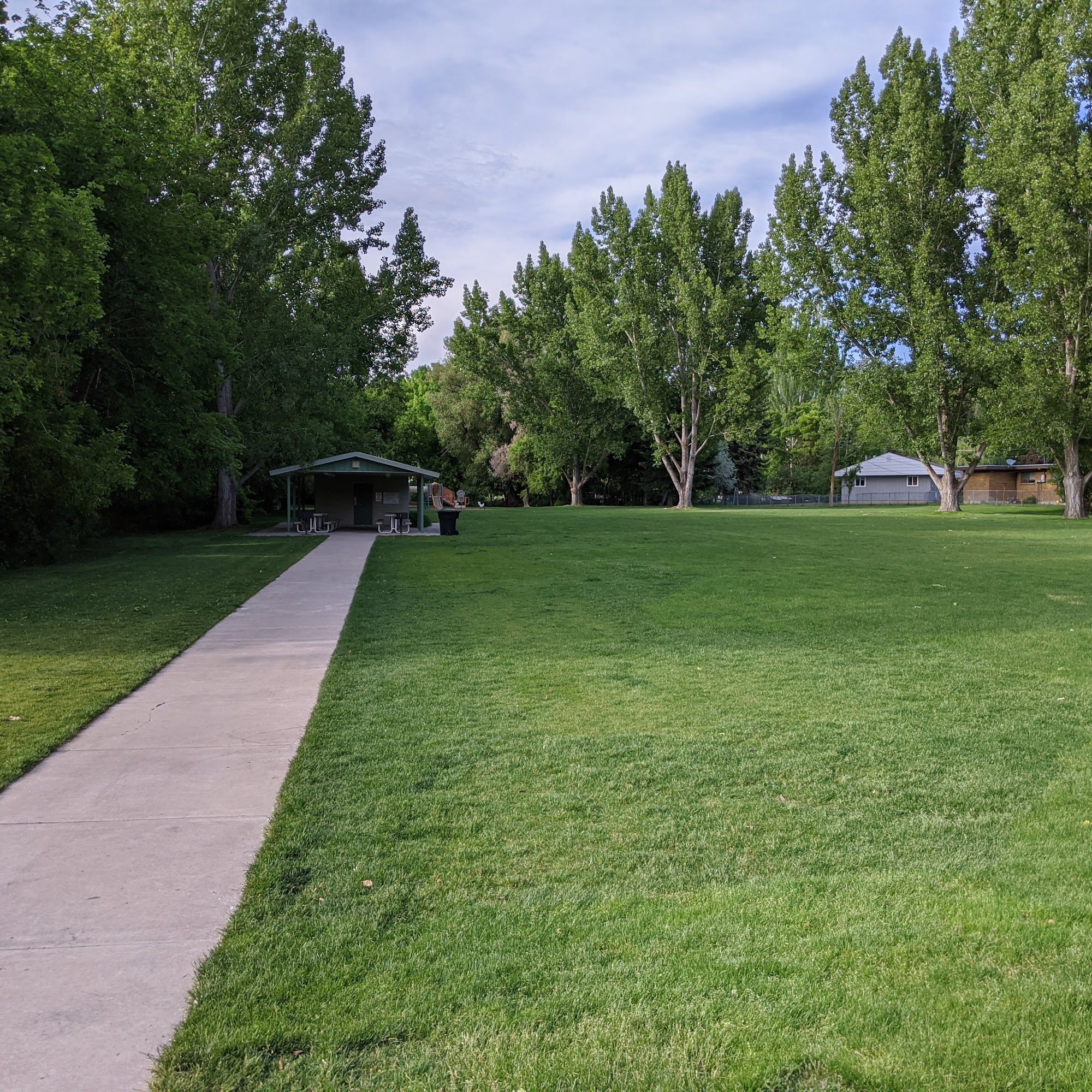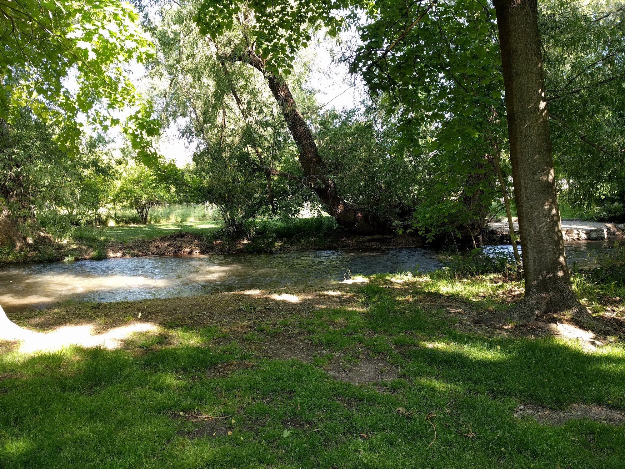 Jens Johansen Park is a quiet, tidy, and well-maintained neighborhood park. It boasts a beautiful grove lining a stream and has many trees. Facilities include covered picnic tables, bathrooms, and running water. It is an excellent and highly recommended place for dogs, with off-leash rules applying. Dogs are allowed to play in the river on the left side of the park. It is a fine, good, and nice park for walking dogs or celebrating, though care is needed near the water's edge.