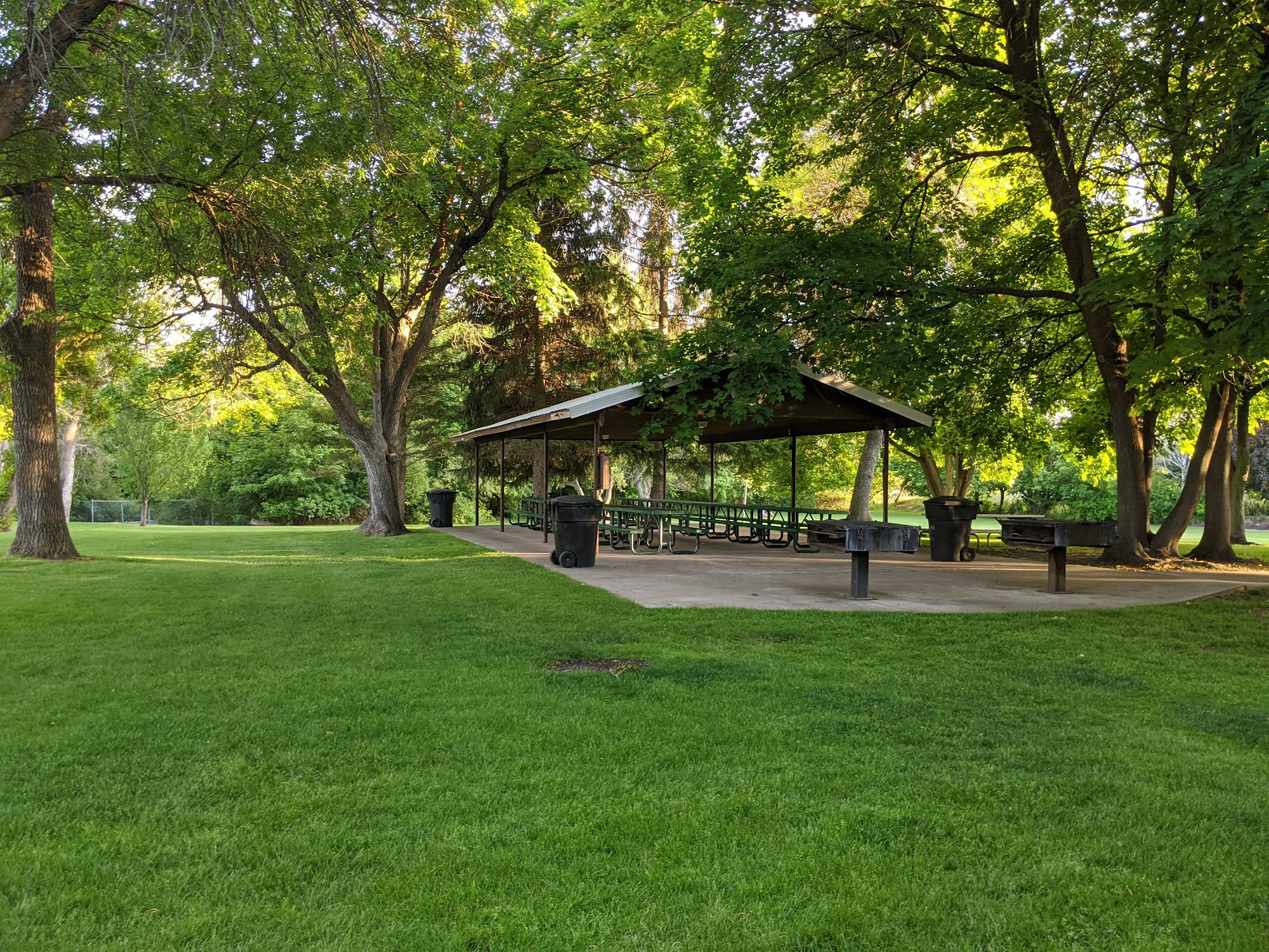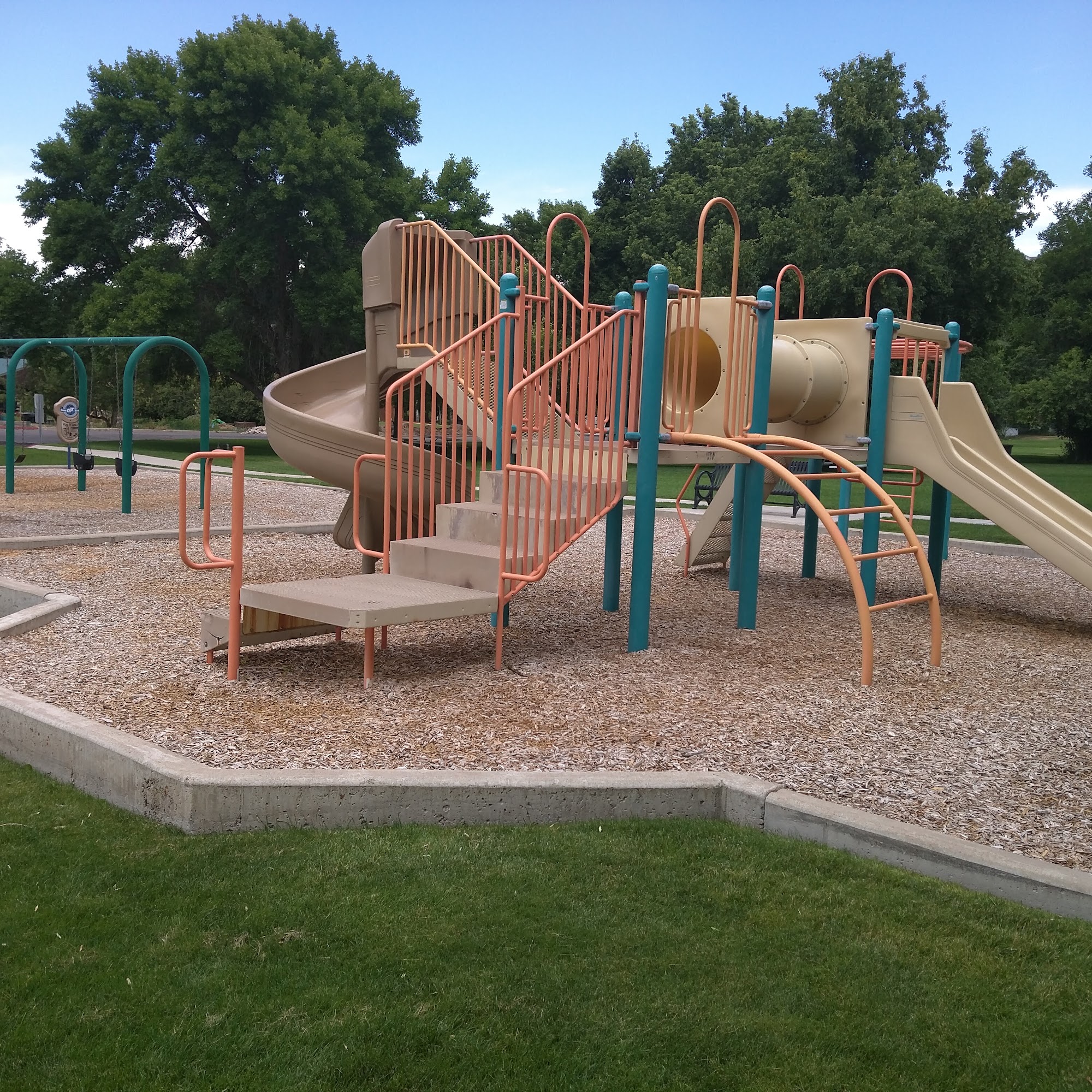 Lovely, quiet little park with a pavilion, sand volleyball, and playground. It has one lonely picnic table but there is some shade. The play area with swings is in full sun unfortunately.