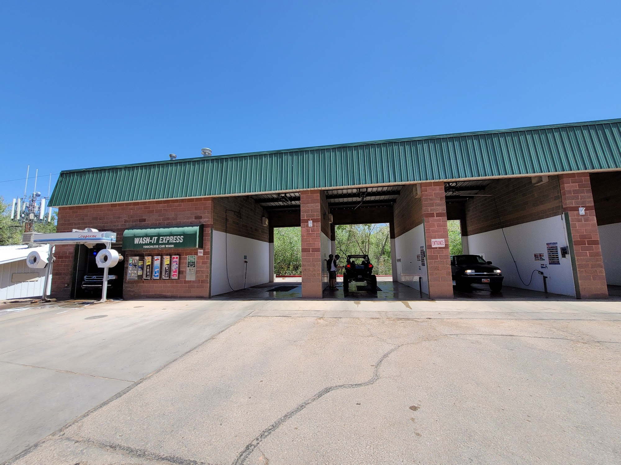 Wash-It Express offers a touchless drive-through car wash that provides a quick and thorough cleaning experience. Customers appreciate the high water pressure and the good condition of the brushes, which help remove dirt effectively, especially after off-road adventures. The wash uses a card reader, making payment easy without quarters, though some machines have experienced issues with coin acceptance and vacuum functionality. The water temperature is generally acceptable, and the dryers do a good job, particularly for those with ceramic coatings. However, reviews mention occasional problems such as soap not working properly, difficult-to-read timers, and dryers or vacuums not functioning at times. Staff members are available to assist and address concerns, showing a willingness to help improve the experience. Overall, Wash-It Express is a convenient option for a quick car clean, but some equipment issues have been noted that may require attention.