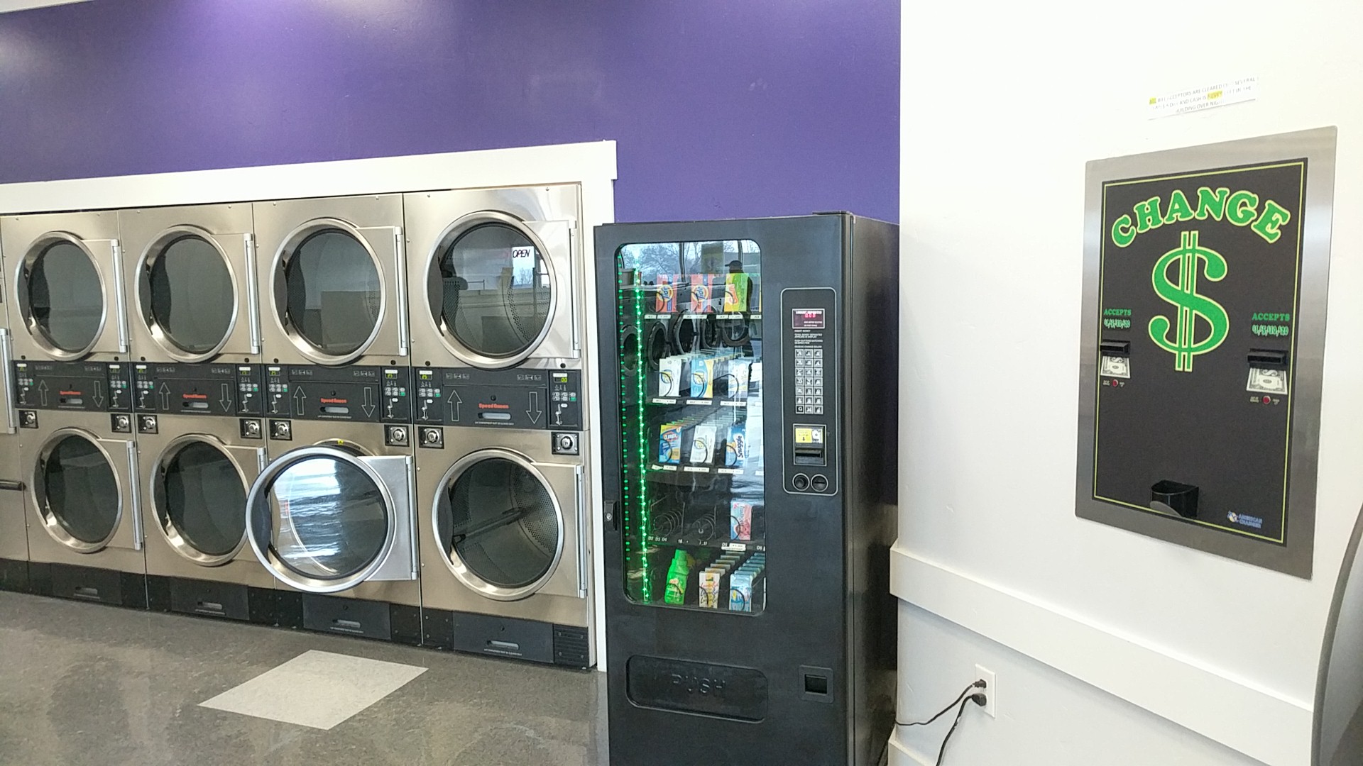 I really love this laundry mat. The environment is super clean and well maintained. The machines are a little over priced, however I can't complain much since they wash my clothing well. Another thing I like is, if you forget to bring cash, you can pay with your phone.