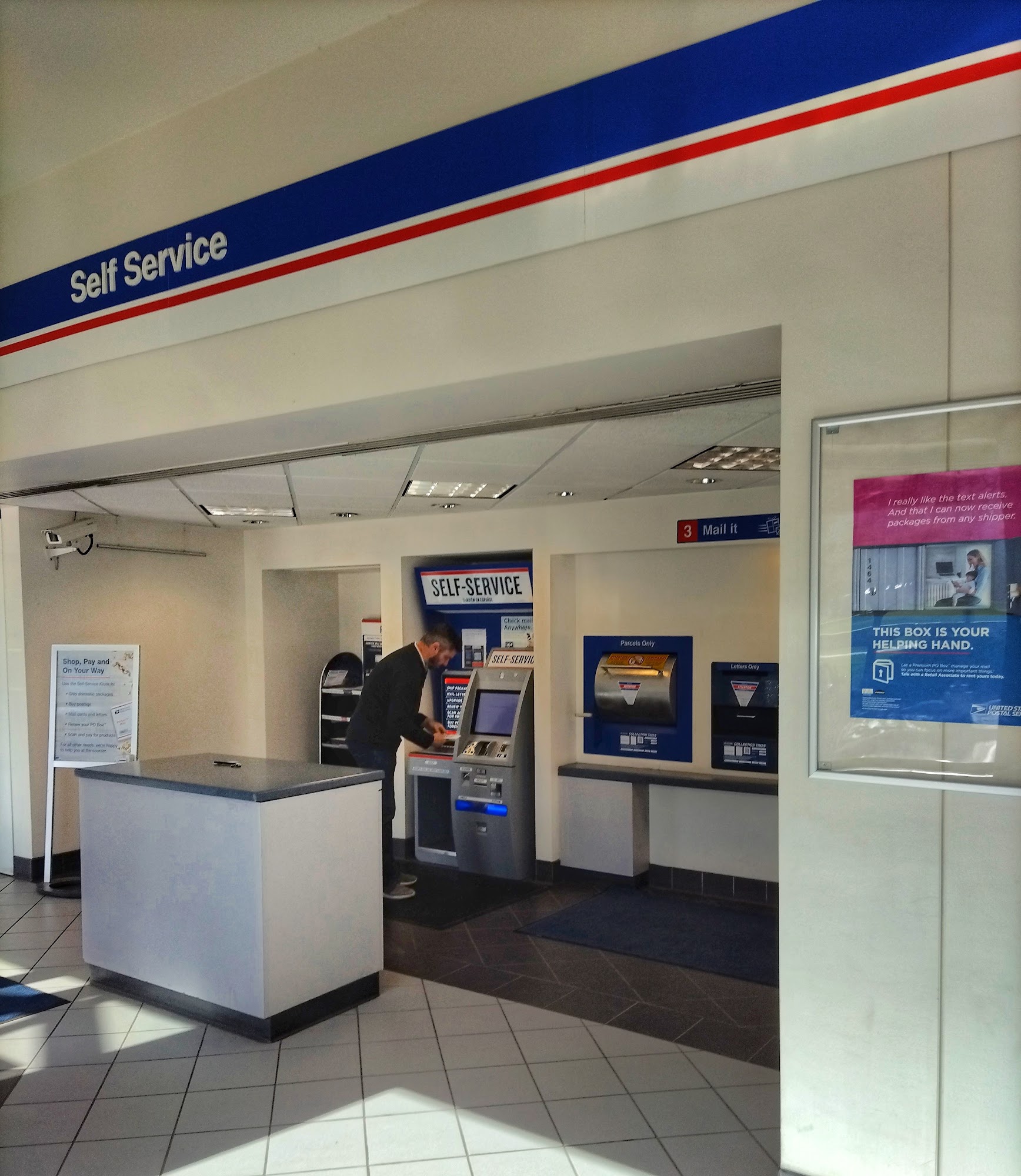 Should have gotten the name, but your employee today has been extremely helpful and friendly. Educated me on how to send a package properly if the envelope contains a gift card, and I bought extra stamps just for that purpose thanks to him. He has a beard and was working at the very left station. Thank you!