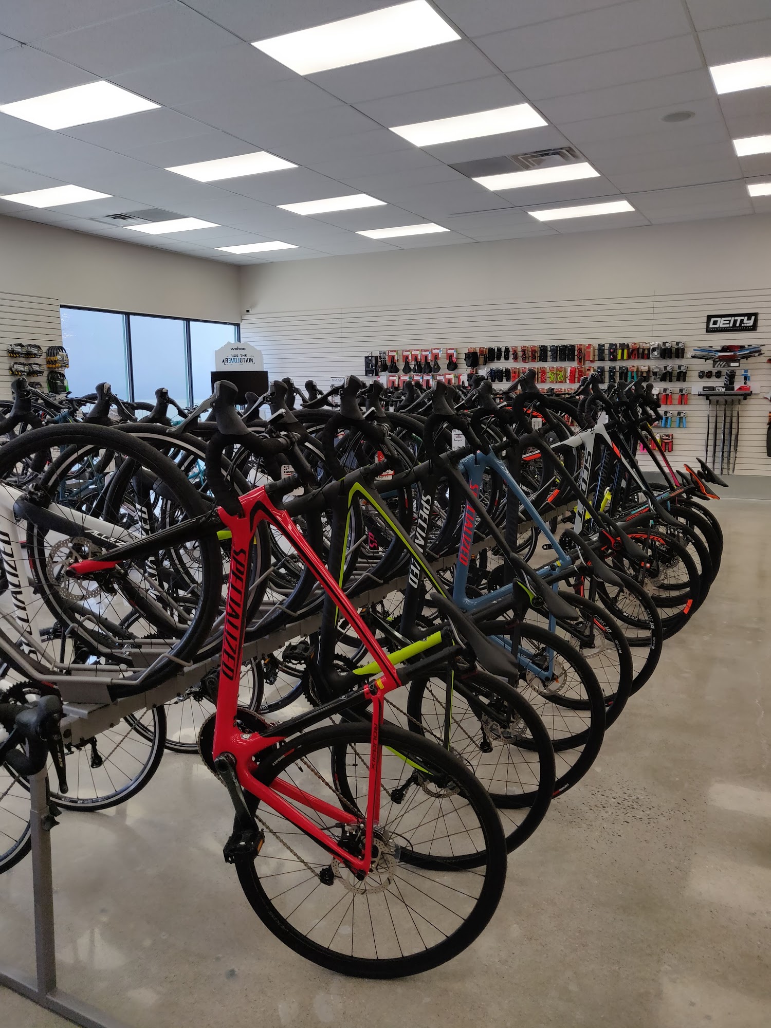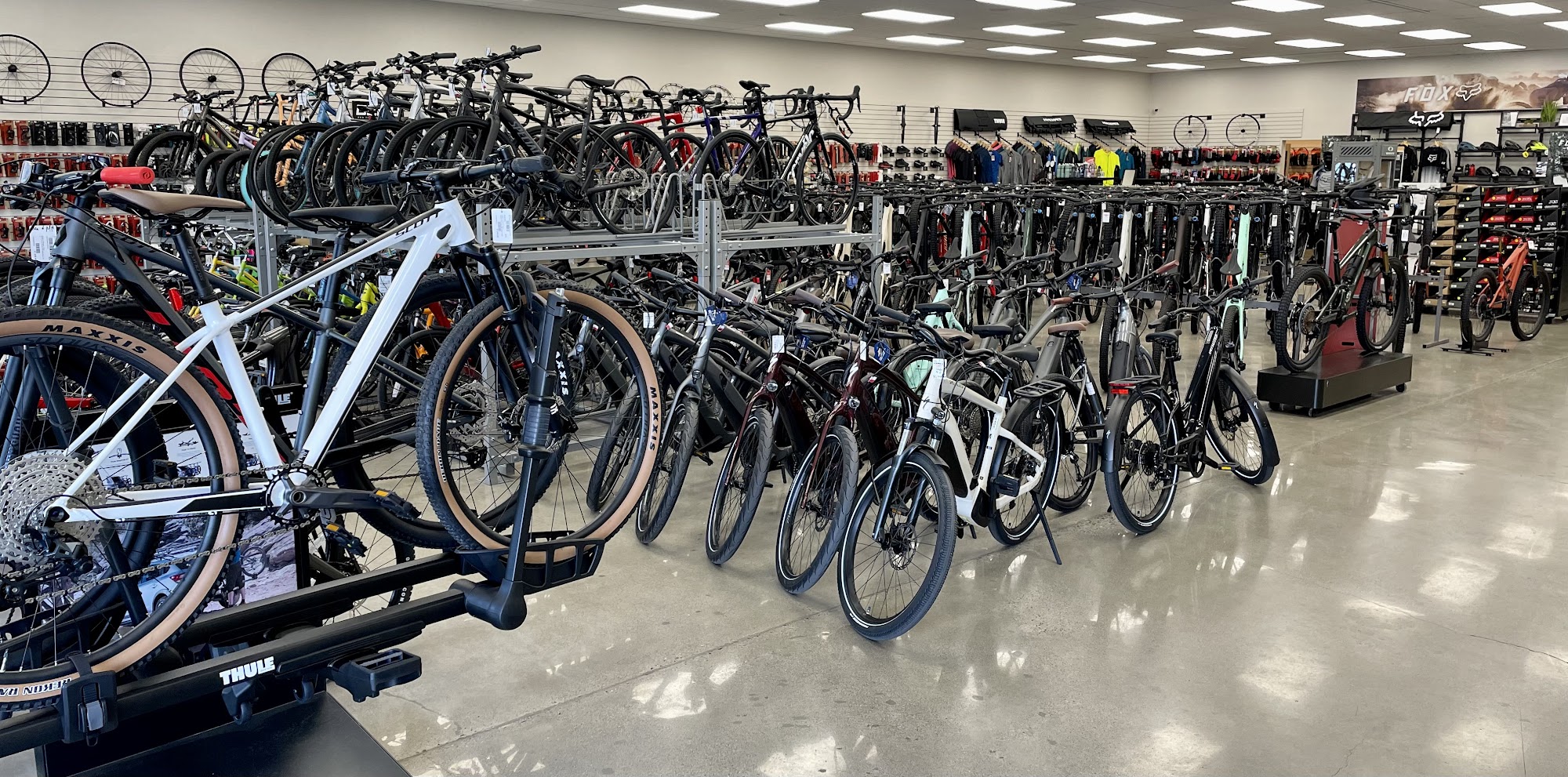 We are a full service bicycle shop. We sell Specialized, Scott, Santa Cruz, and Cannondale brands of mountain, road, gravel, Ebikes, fat bikes, BMX, and kids bikes. We also carry all accessories from helmets to power meters. We have multiple brands of clothing to match all styles of riding. We service all brands of bicycles with the most experienced and well trained mechanics in the state. We service almost all suspension in house. Come see us. We'd love to help you out!