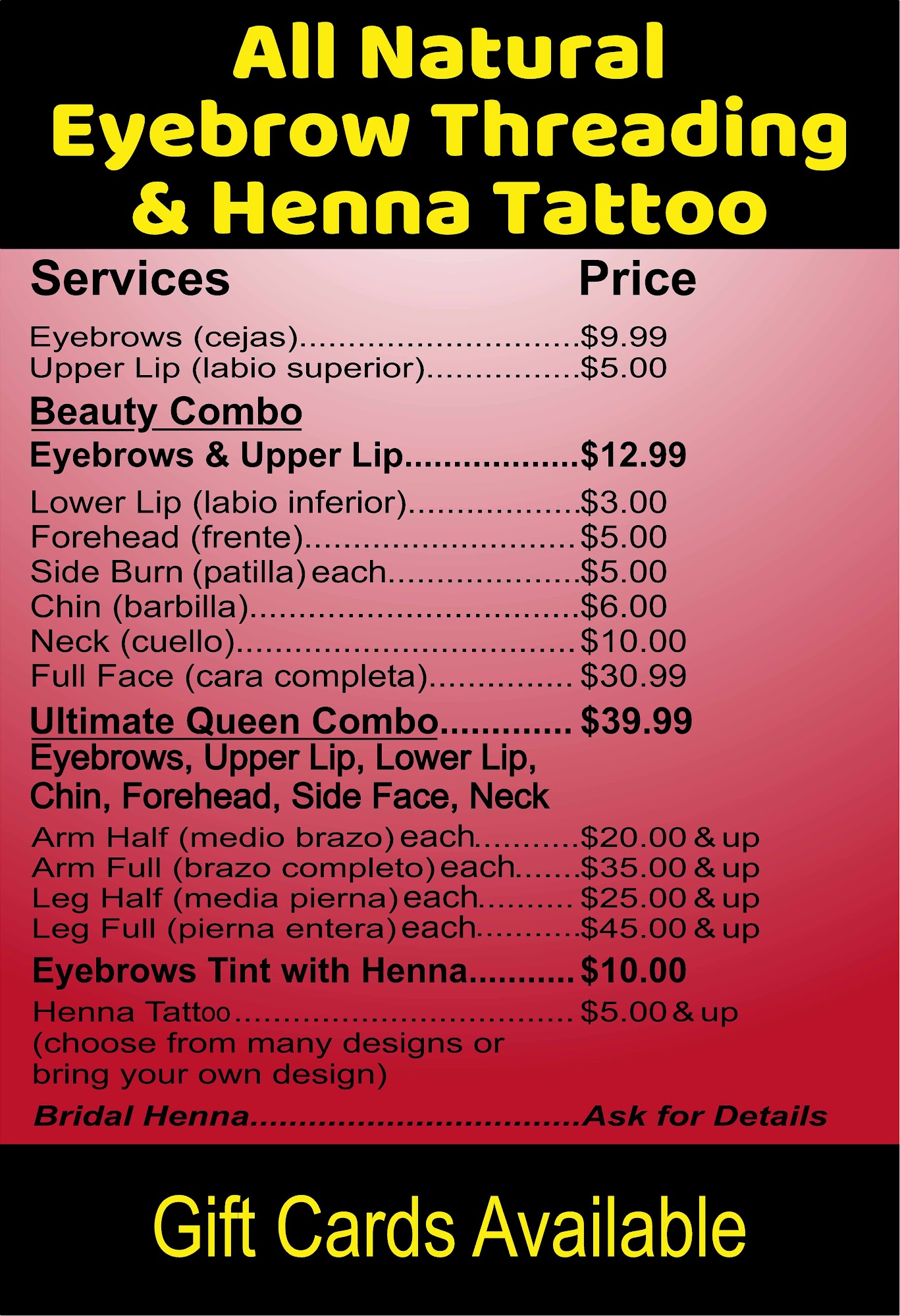 Great service, they were super nice and did a great job on my henna and brows