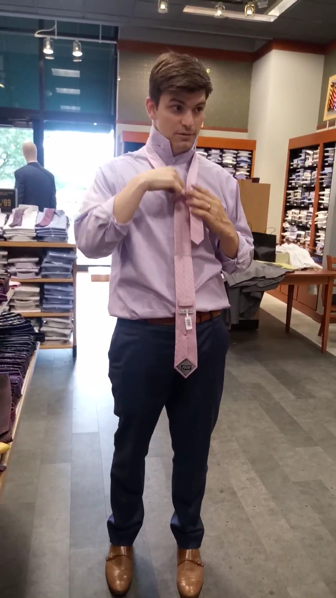 The person who helped us was very friendly, helpful, and helped me with exactly what I was looking for. I just went to look, but I bought a suit, an overcoat, a shirt, shoes, and a belt.