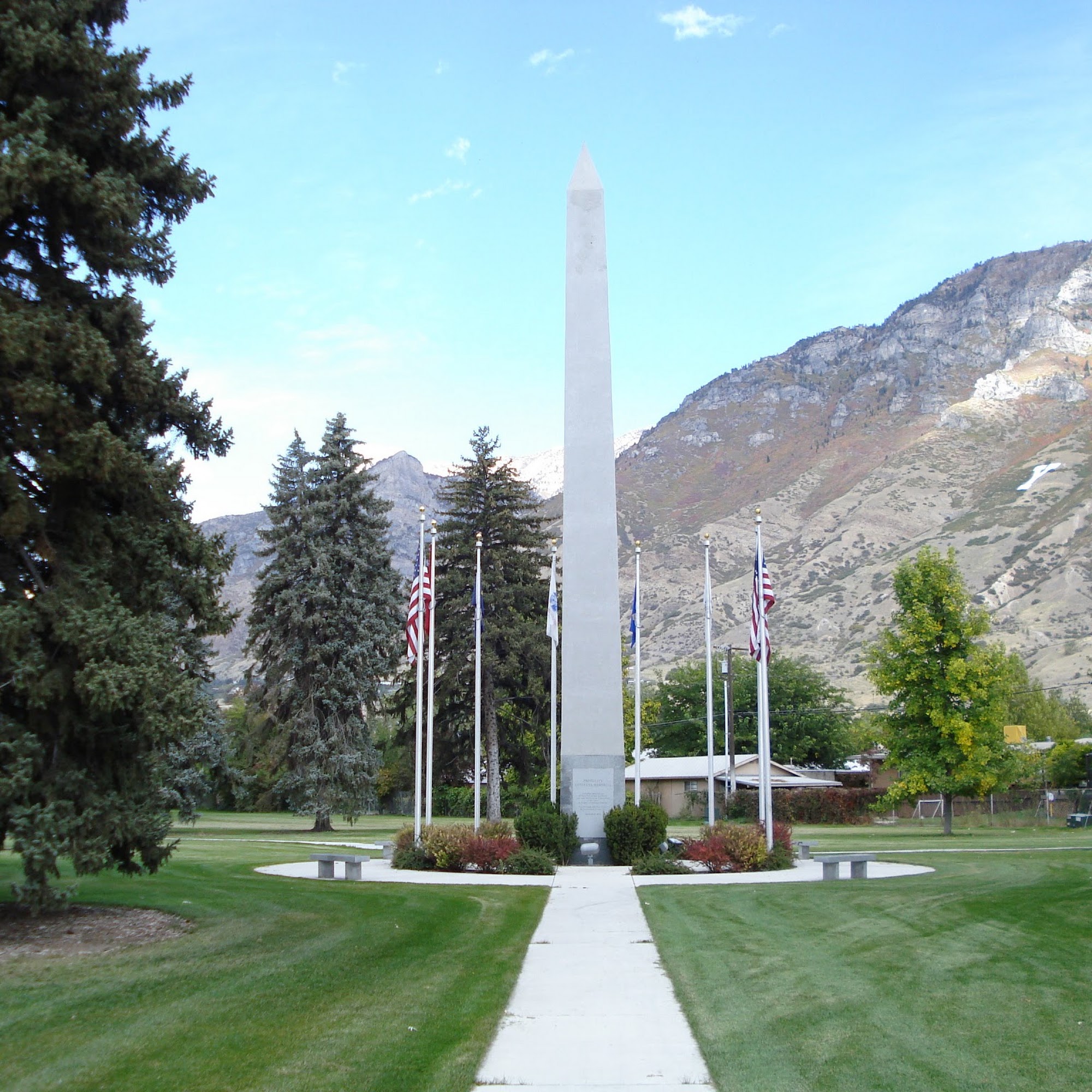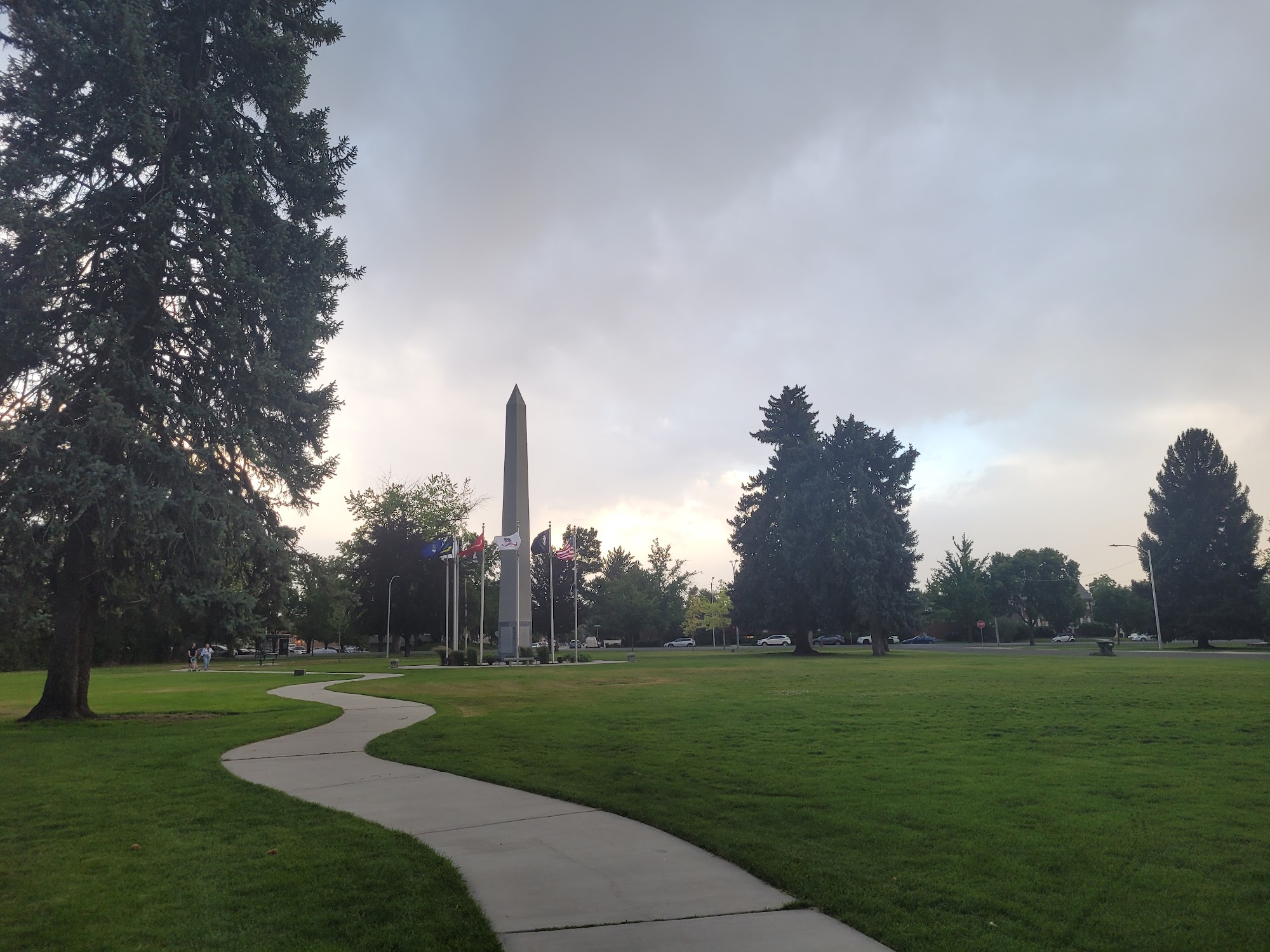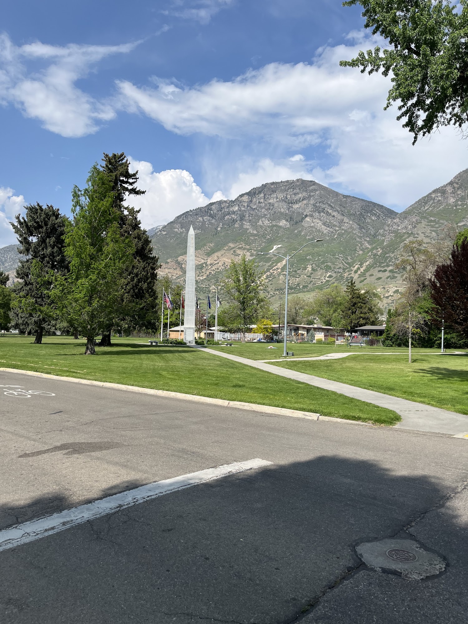 Memorial Park in Provo is a peaceful and beautiful space dedicated to honoring our nation's warriors. It features monuments such as a cannon and an obelisk, which inspire respect and patriotism. The park is surrounded by blooming flowers and tall trees, creating a calm environment perfect for reflection. Visitors can enjoy walking along its walkways, relaxing on benches, or having a picnic on the grass. The park has over 6 acres of green space, making it ideal for outdoor activities. There is a playground at one end of the park, providing a nice spot for children to play and create memories. The open field of view and shade make it a good place for walks and relaxing, especially on sunny days. Dog owners find the park friendly, with some bags available for clean-up. Although there are no bathrooms and limited fencing, the park remains a popular location for community events like July 4th celebrations. Overall, Memorial Park offers a quiet, well-maintained setting where visitors can enjoy nature, reflect, and gather with family and friends.