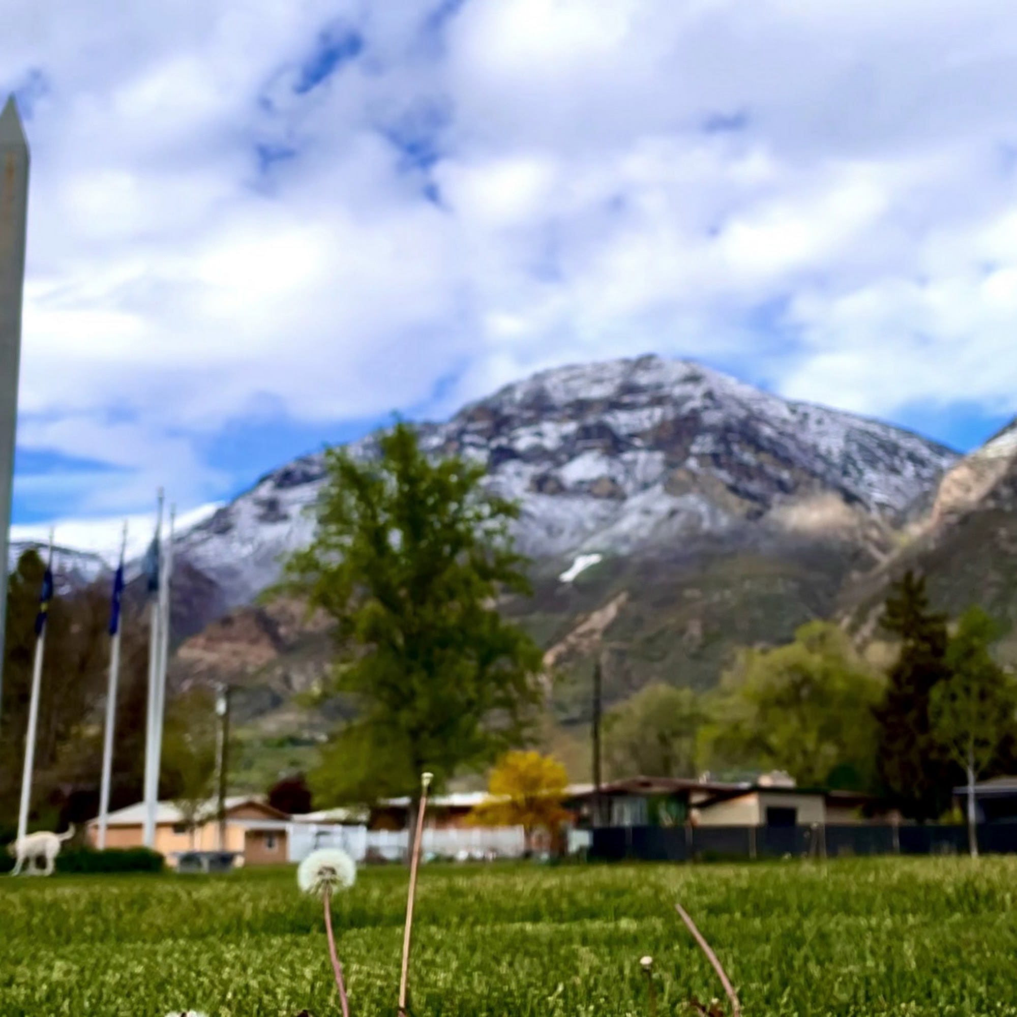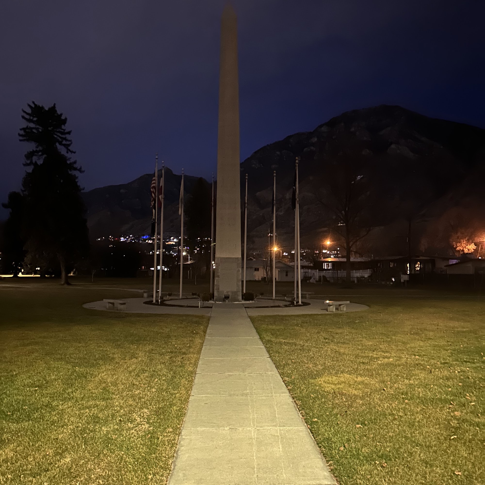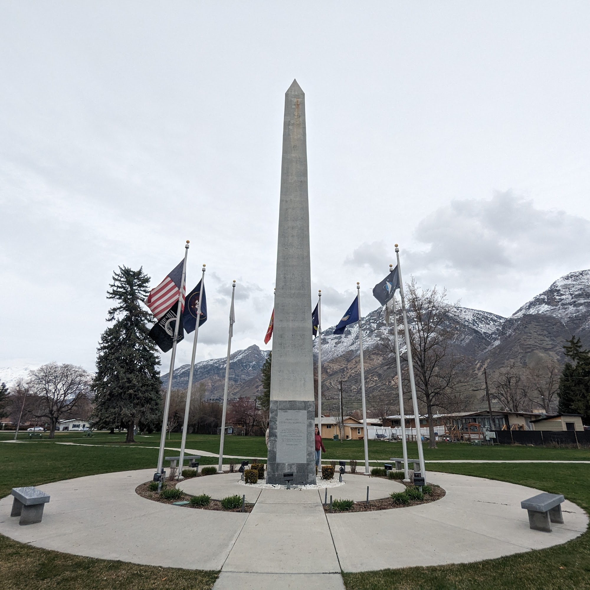 Memorial Park in Provo is a peaceful and beautiful space dedicated to honoring our nation's warriors. It features monuments such as a cannon and an obelisk, which inspire respect and patriotism. The park is surrounded by blooming flowers and tall trees, creating a calm environment perfect for reflection. Visitors can enjoy walking along its walkways, relaxing on benches, or having a picnic on the grass. The park has over 6 acres of green space, making it ideal for outdoor activities. There is a playground at one end of the park, providing a nice spot for children to play and create memories. The open field of view and shade make it a good place for walks and relaxing, especially on sunny days. Dog owners find the park friendly, with some bags available for clean-up. Although there are no bathrooms and limited fencing, the park remains a popular location for community events like July 4th celebrations. Overall, Memorial Park offers a quiet, well-maintained setting where visitors can enjoy nature, reflect, and gather with family and friends.