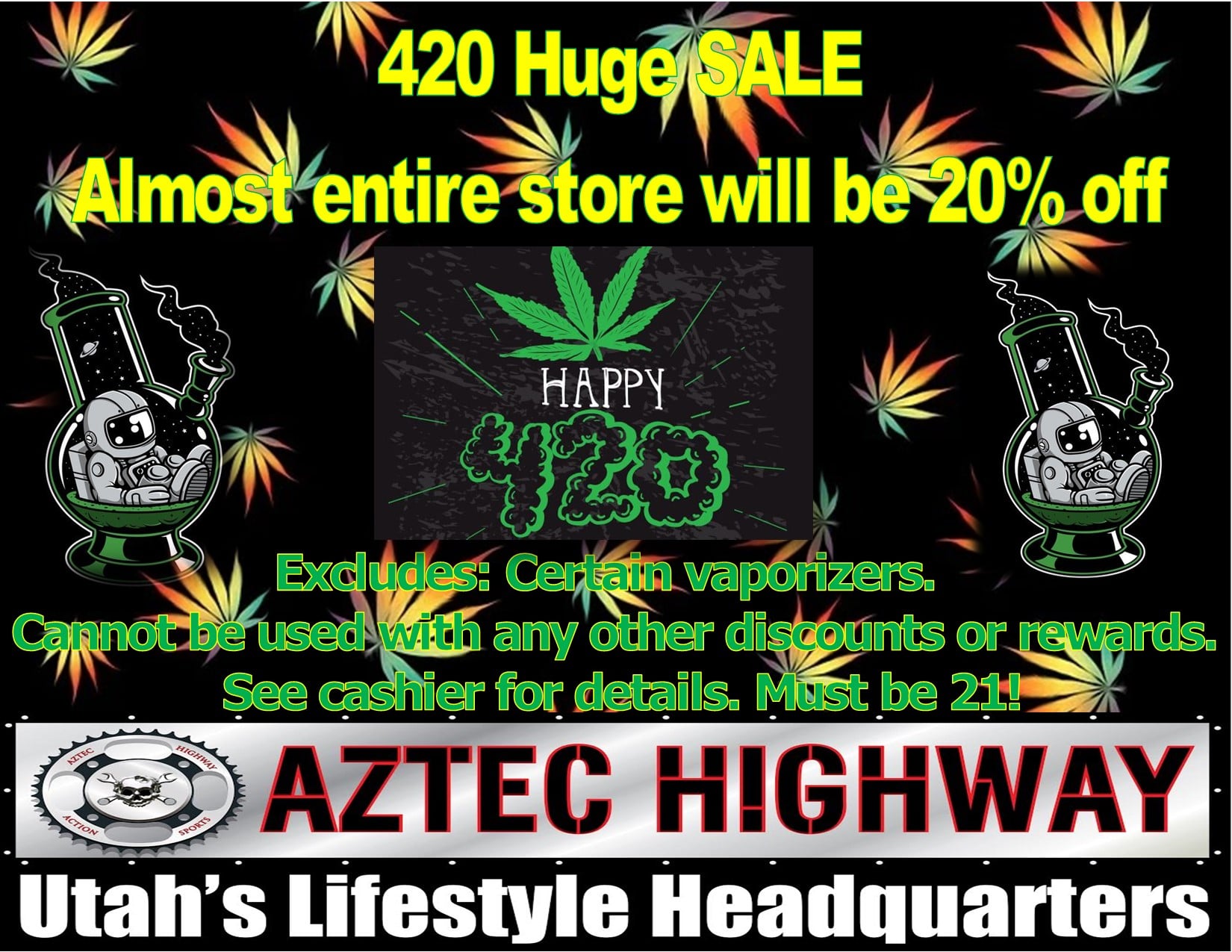 Aztec Highway in Roy, Utah, is a popular head shop known for its wide selection of products and friendly service. Customers appreciate the knowledgeable, helpful, and kind staff who offer personalized recommendations and keep them informed about specials and new items. The shop features a large variety of vaping products, including disposable vapes, e-liquids, and accessories for both beginners and experienced vapers. They also have a significant collection of tobacco and tobacco accessories, as well as equipment for consuming cannabis and concentrates, with a broad range of glassware and paraphernalia. The store is known for its pleasant atmosphere, often filled with the scent of incense, and its willingness to exchange faulty vapes for ones that work. In addition to vaping supplies, Aztec Highway offers a good selection of clothing brands such as Metal Mulisha, Fox, Alpinestars, and IRATE, along with adult novelty items. Customers value the store’s variety and the option to join a membership for discounts and promotions. Although some find their prices high on disposable vapes, overall, visitors report consistently positive experiences, praising the helpful staff and extensive product range. Aztec Highway serves the Roy and Ogden area as a reliable destination for head shop needs and more.