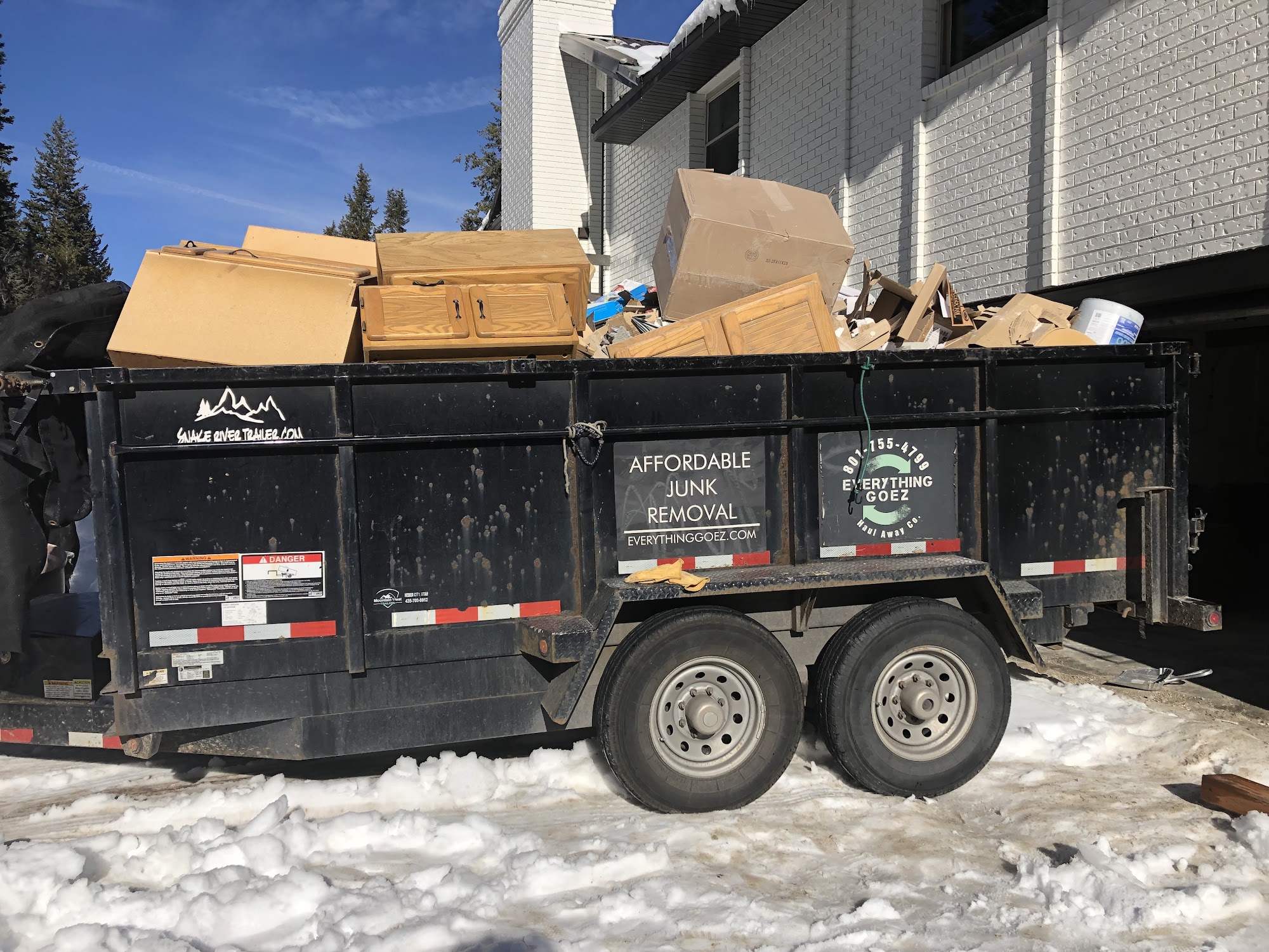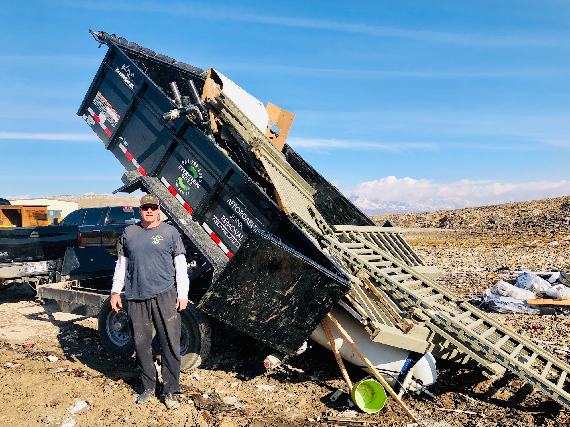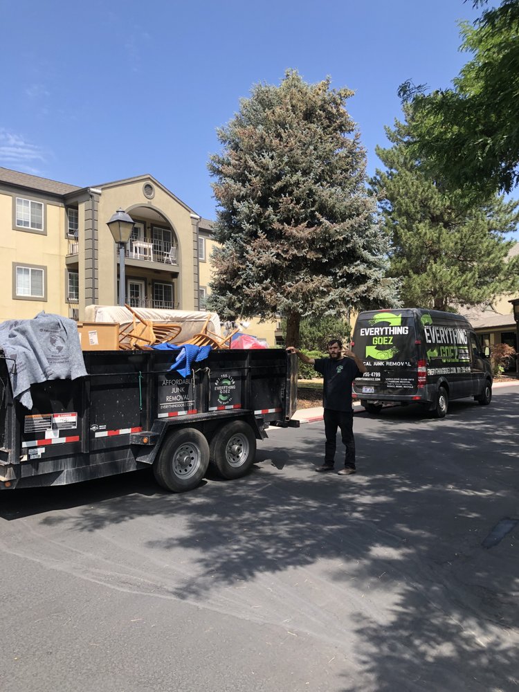 We are a local, full service junk removal company. We offer quality service at affordable prices and are fast and reliable. We have easy scheduling and even offer same day service. Whether it’s a single item pickup or whole home clean out, we will be there and will do all the work for you. It’s as easy as saying “Everything Goez”! We operate out of a 7x14 dump trailer that is a little bigger than a 15 yard dumpster. We offer hourly pricing or bulk pricing for the bigger jobs. Contact us today via text, phone, or our website for a free estimate of service!