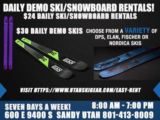 We had a great experience with Utah Ski Gear. However, I did have my snowboard bindings readjusted, and next day during my time at Brighton, I noticed one of the bindings was loose and shifting slightly. Otherwise, my friends and I had a good experience with purchasing ski gear and snowboard gear.