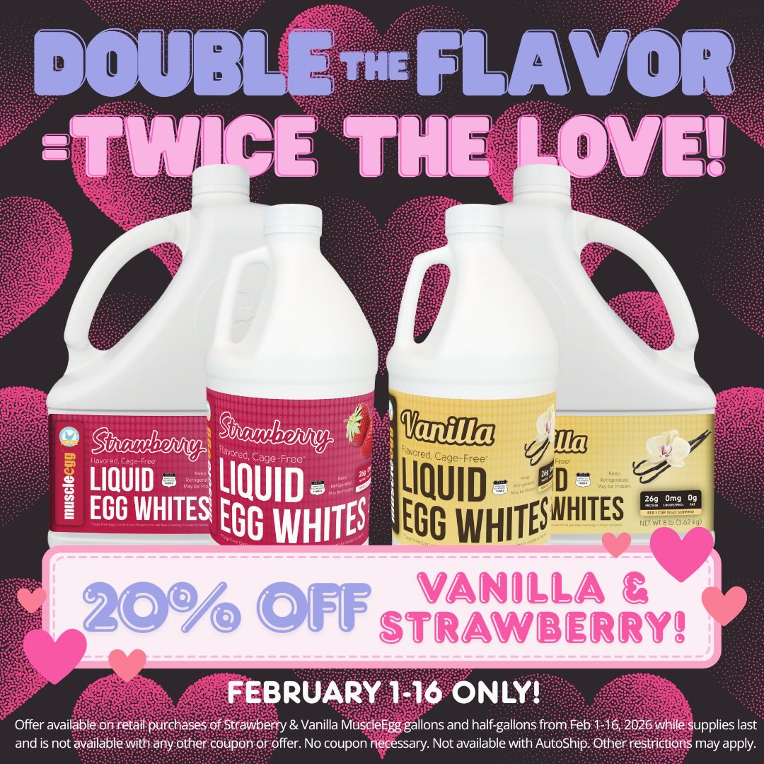 MuscleEgg plain and flavored cage-free egg whites are available for home delivery! We offer liquid gallons, half-gallons and single-serve bottles as well as freeze-dried powders. Flavors include Cake Batter, Chocolate, Chocolate Caramel, Chocolate Mocha, Creme Brulee, Fruit Cereal, Mint Brownie, Pumpkin Spice, Strawberry, and Vanilla. We also carry plain Original and Organic. 100% cage-free pasteurized egg whites. Drink it. Cook it. Love it. MuscleEgg