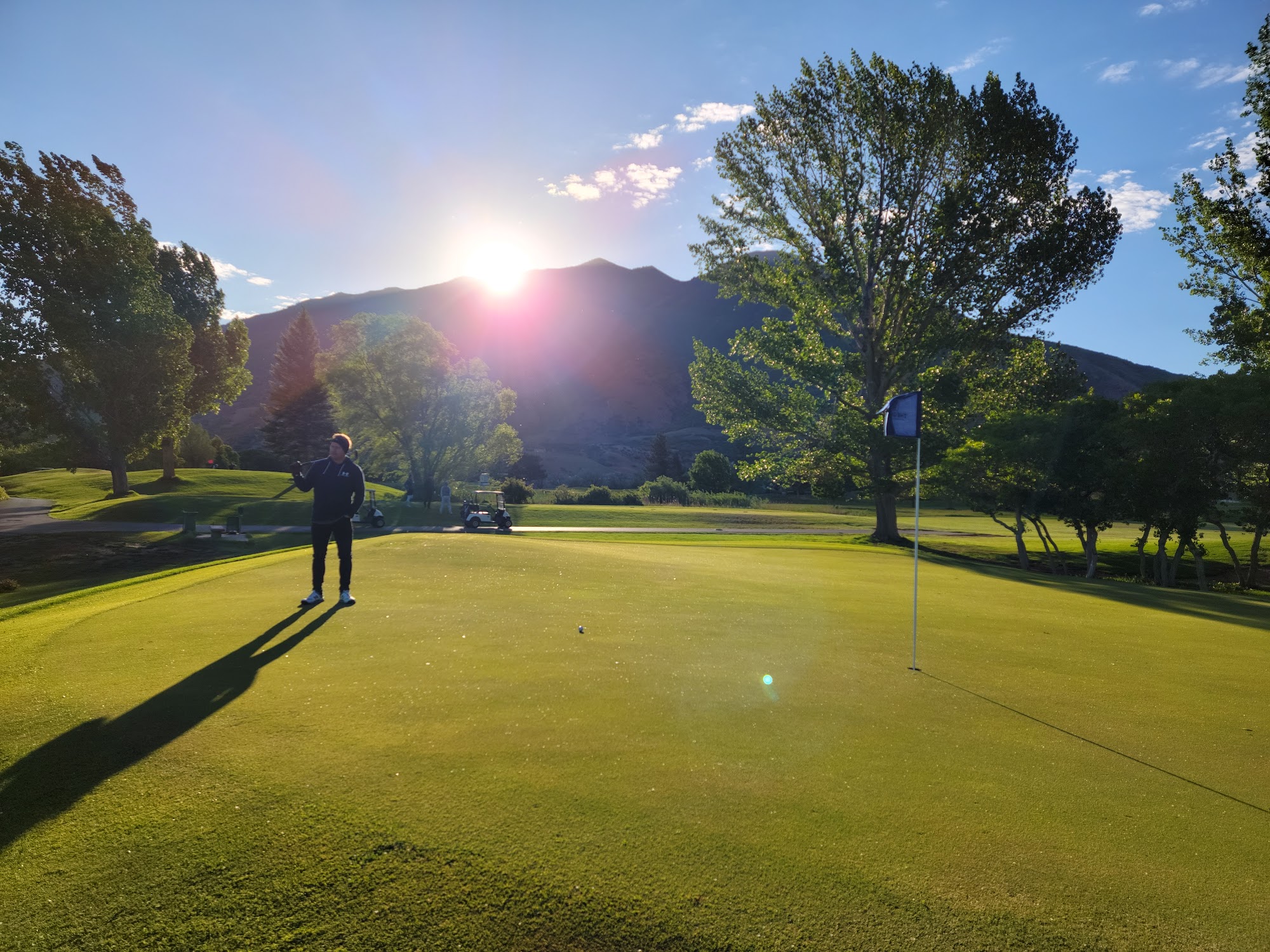 Front nine a bit confusing if you are walking without a laser distance finder .The greens and tee boxes need help. Beautiful location in the canyon. Front desk accommodating to our needs. If I lived closer (SLC)I would play more often. Has some fun holes.