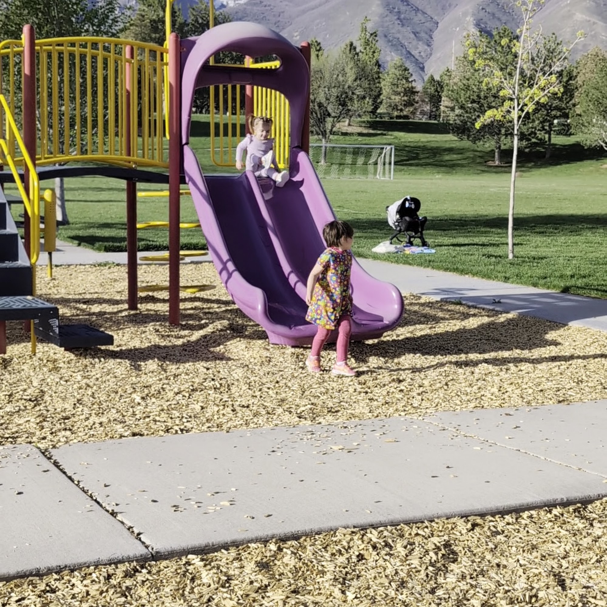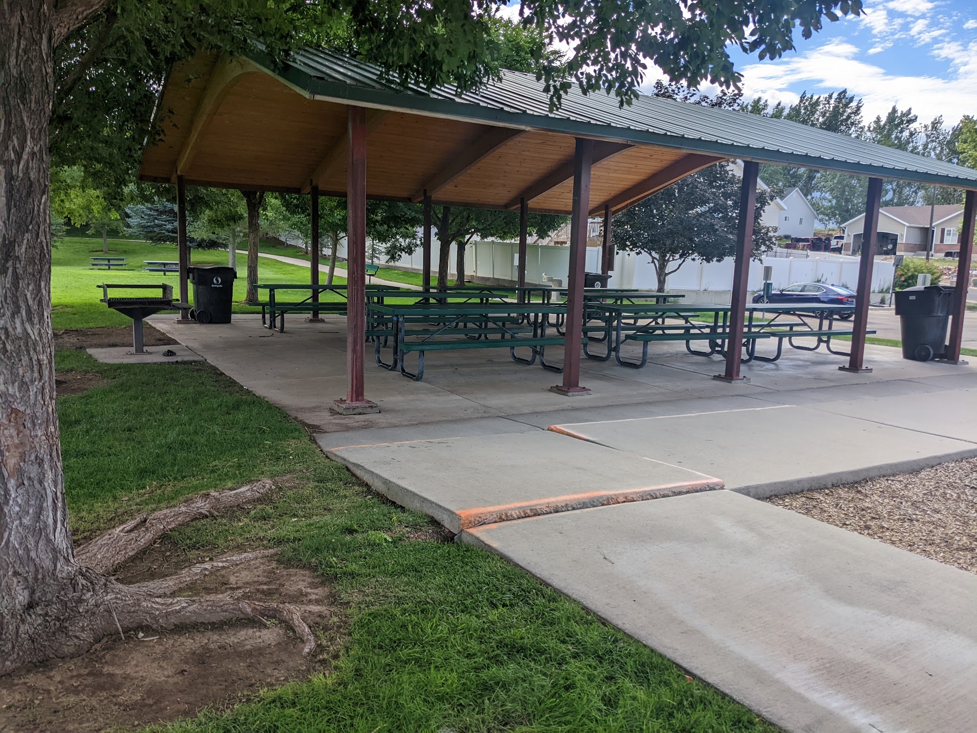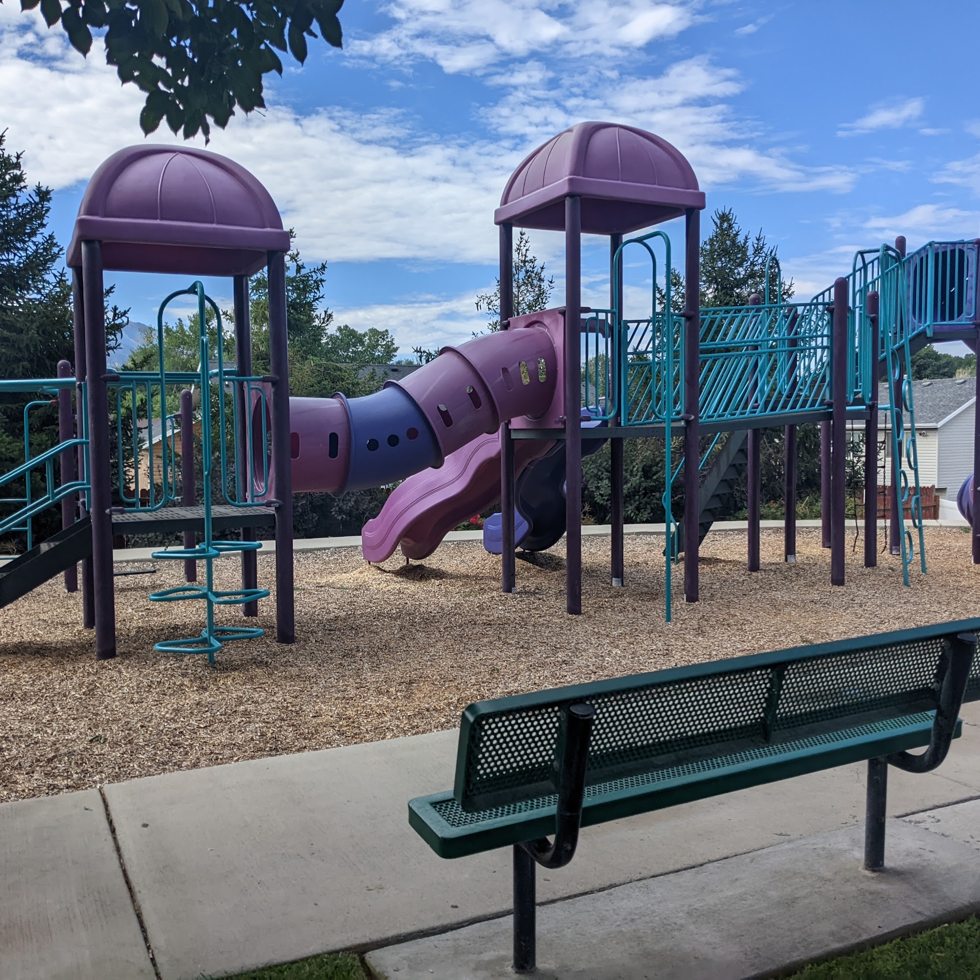 It's a pretty park other than some sidewalks popping up, and it needs some repairs to it's tube slide (shown in pictures), It is clean for the most part and has beautiful walking trail around the park. A big hill for rolling down on the summer and tubing down in the winter. It's also mostly shaded as well.