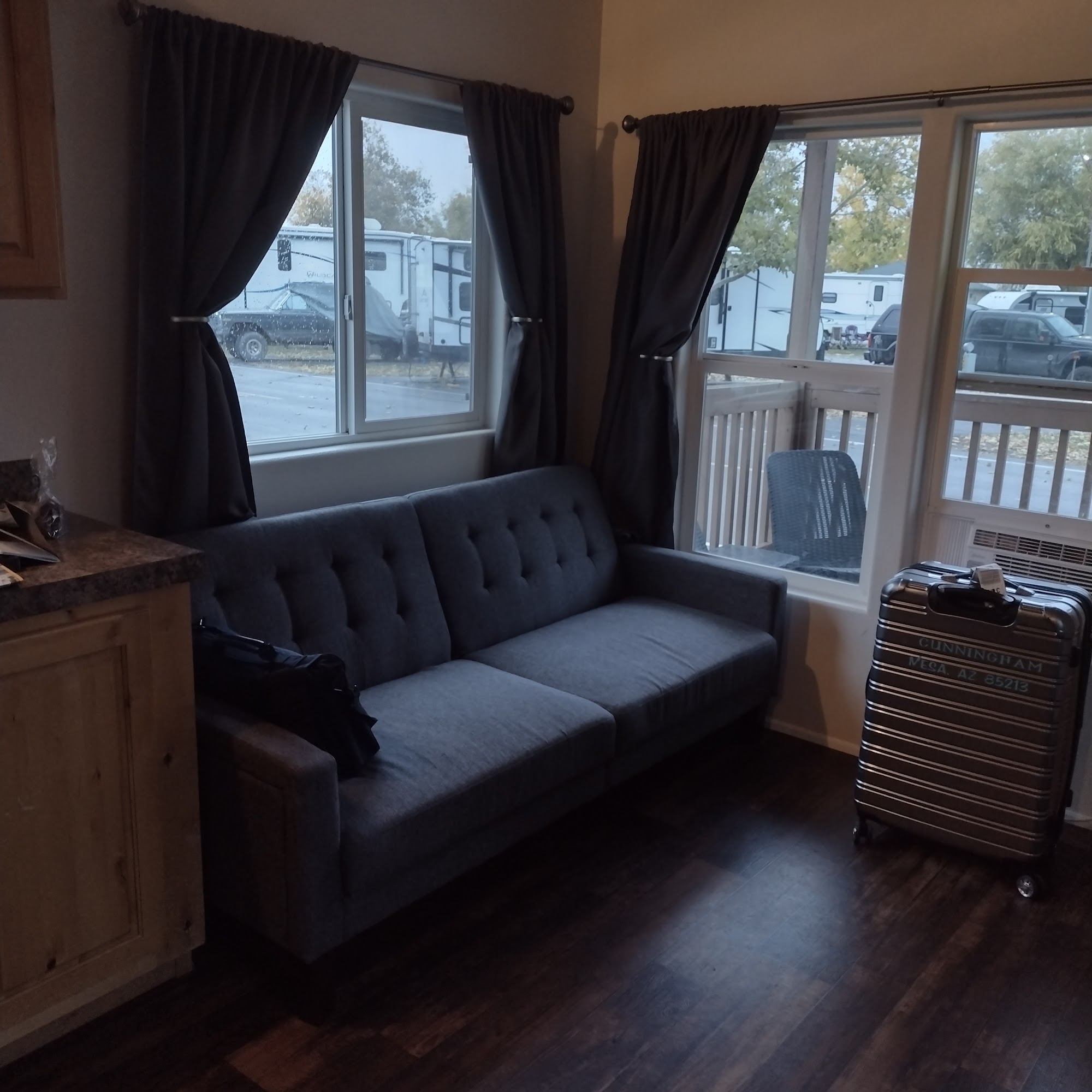This KOA is right near railroad tracks. The trains make these very loud banging noises like they are hooking up and when they go by, your whole trailer shakes. It wassuper load.