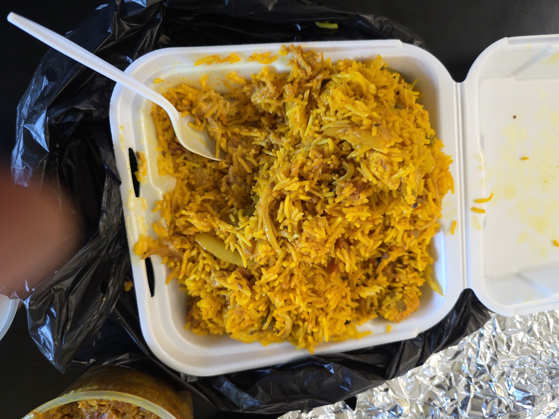 The food is genuinely amazing. Rotis made with ghee. Sabjis were not spicy but super flavorful. Food served in plastic and foam, so average service. But food is 11/10