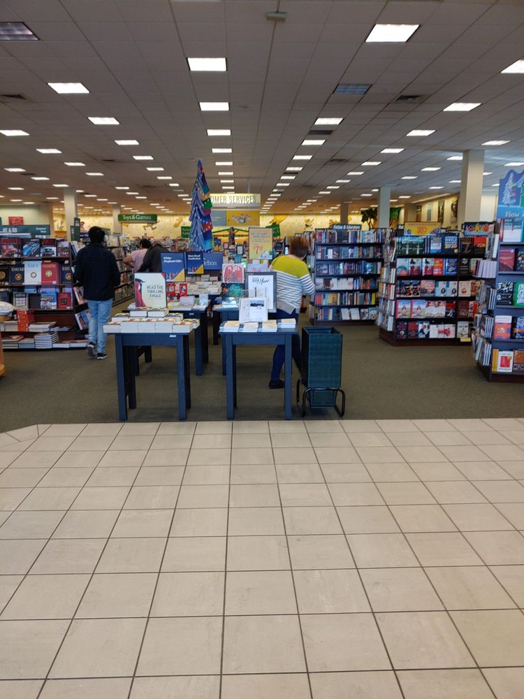 Barnes & Noble is a bookstore with a great selection of books, from children's to adult, including non-fiction reads. It also offers entertainment items like DVDs, music, and plush toys, including Harry Potter paraphernalia. The store is clean and easy to navigate with an open center layout. It has a nice, quiet atmosphere with calming music. The staff is consistently described as friendly, kind, helpful, and awesome. The booksellers and cafe staff are fantastic, and the store manager is noted as very friendly. The cafe provides eating options and is a place to sit and relax, with specific drinks like the Matcha frappe receiving recommendation. The store handles events well, occasionally hosting authors for signings. While most experiences are positive, some customers note the scaled-back selection in specific areas, like comic books and graphic novels, which may not always be in stock. Despite this, it remains a favorite location for many, serving as a go-to for browsing, shopping, and even date nights.