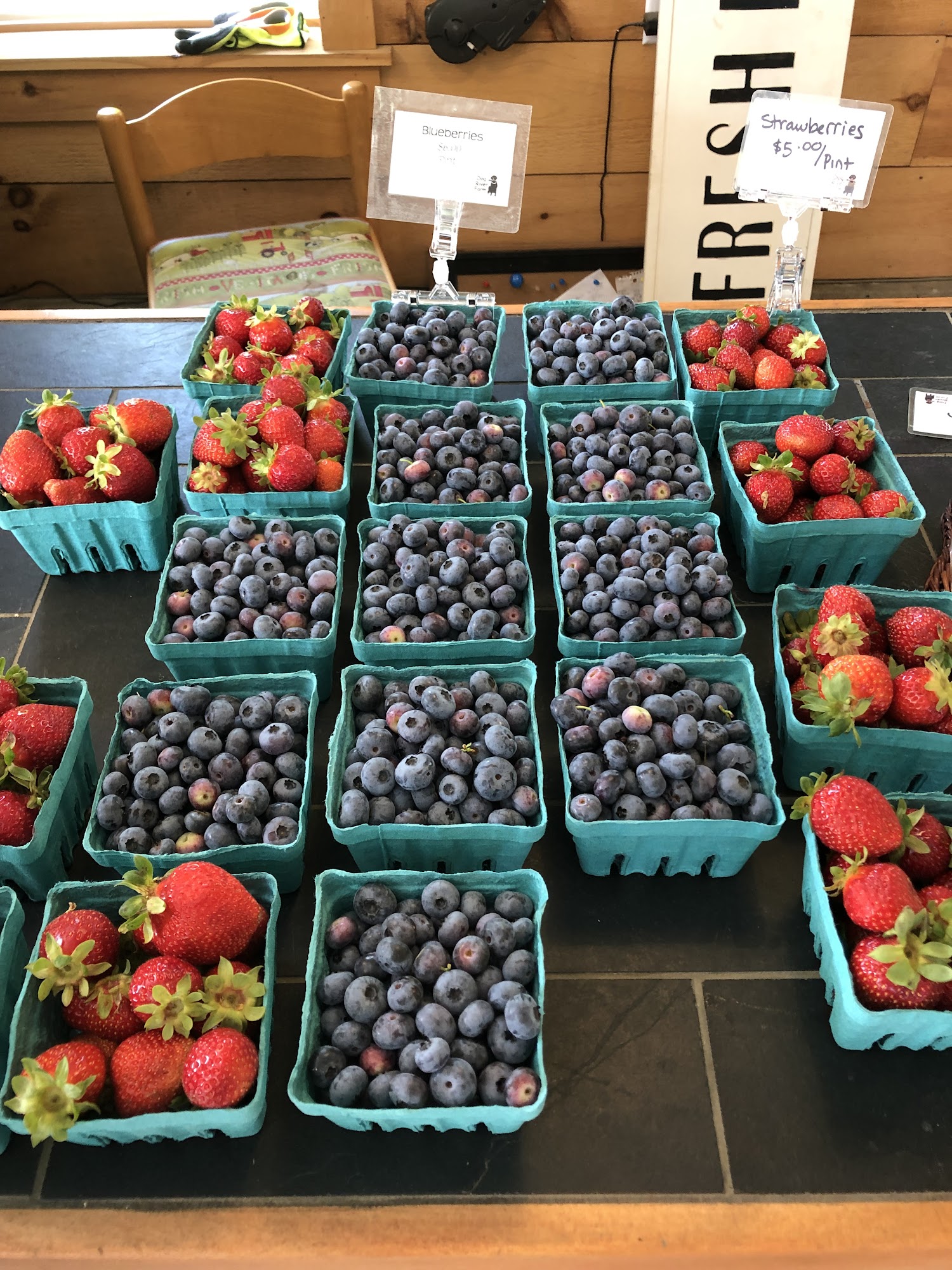 Small but has a lot of seasonal fruit and veggies, meats, eggs and ice cream. All great stuff!!