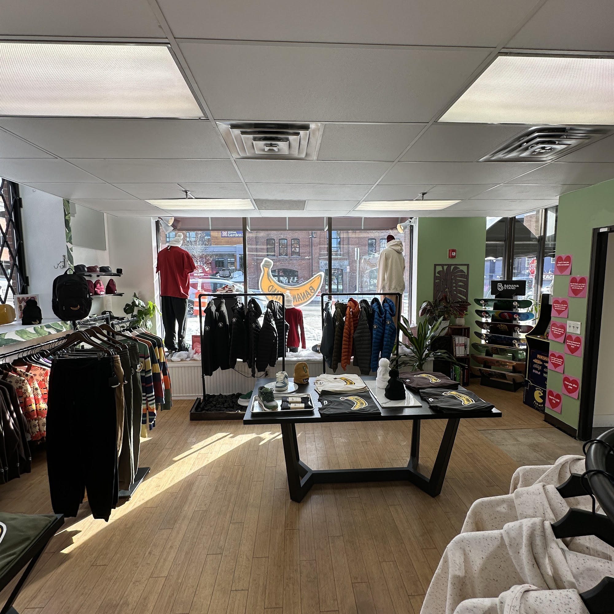 Banana Stand is a fabulous unique store and a top notch street wear shop in Burlington, Vermont. It is an incredible find for vintage clothing, highly curated sneakers, and their own branded merchandise. The store carries a great selection of the latest releases and one of a kind items, including shoes, skateboards, and apparel. It features an outdoor patio and serves chocolate covered banana treats. The owners are great people doing great things, providing incredible customer service. They are so nice and helpful. The store is highly recommended for its stylish and sporty swagger.