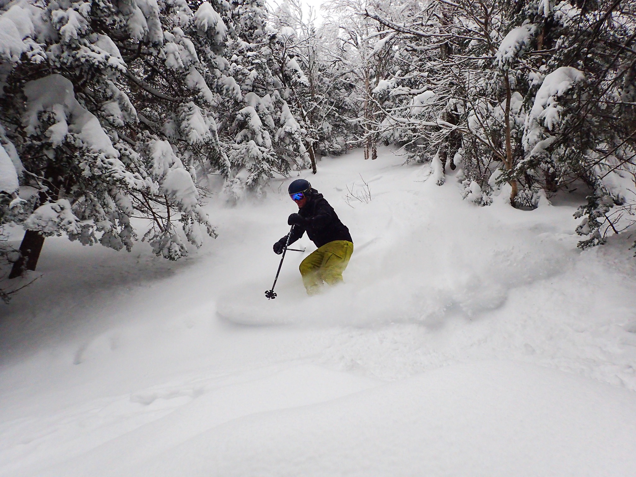 Great spring conditions. Plenty of snow and 2 lifts running on april 4th, black diamonds and blue trails.