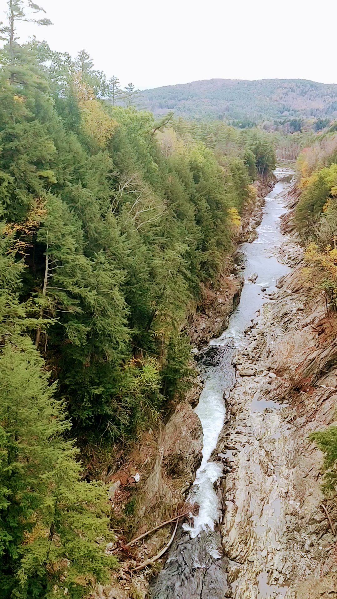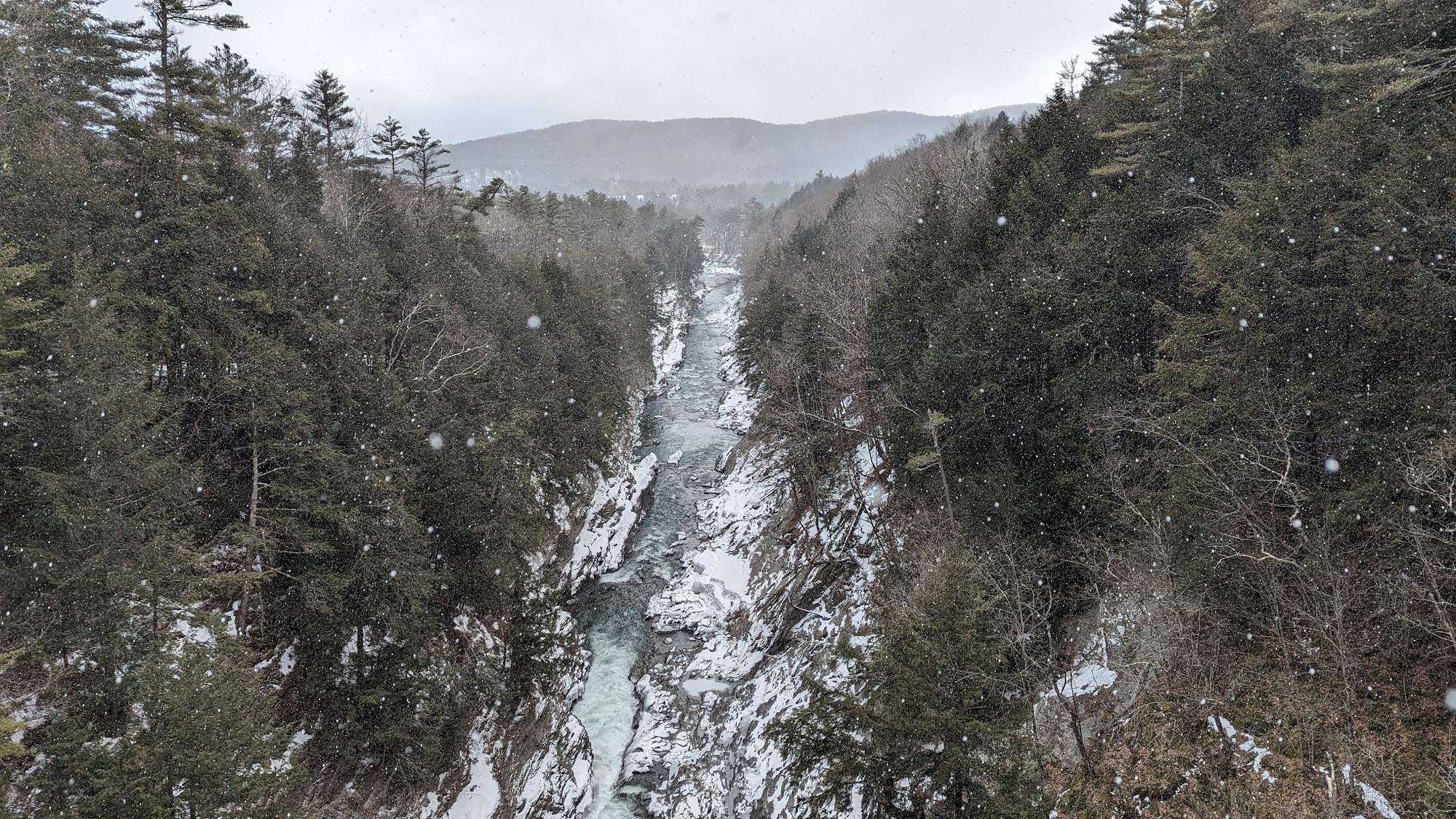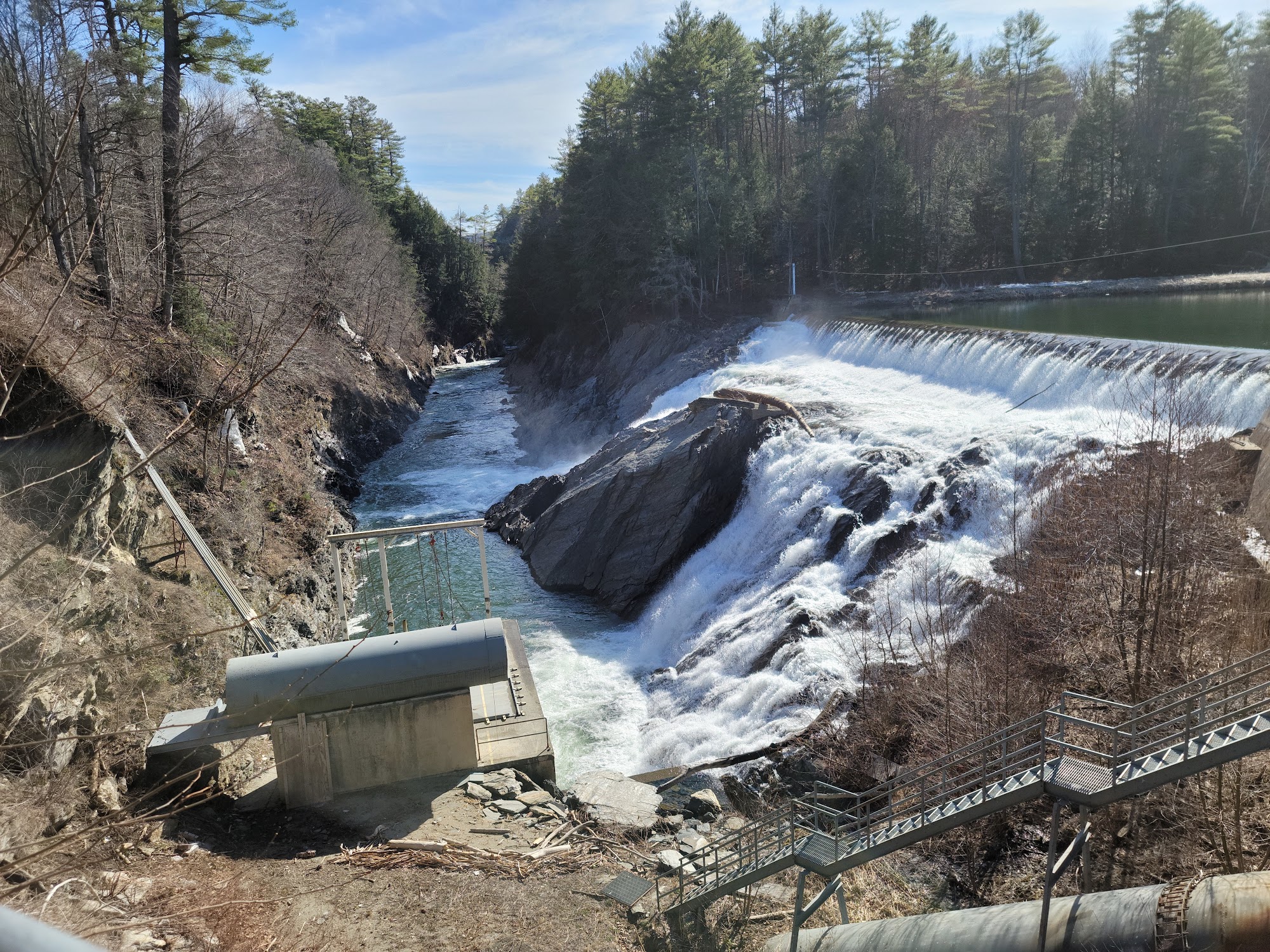 Parking lot and visitor center along the road and close to the bridge. Nice walk to the riverbed on both sides of the road. Nearby, there is a country shop (Quechee Gorge Village) which offers a huge selection of Vermont maple syrup, cheddar, and more.