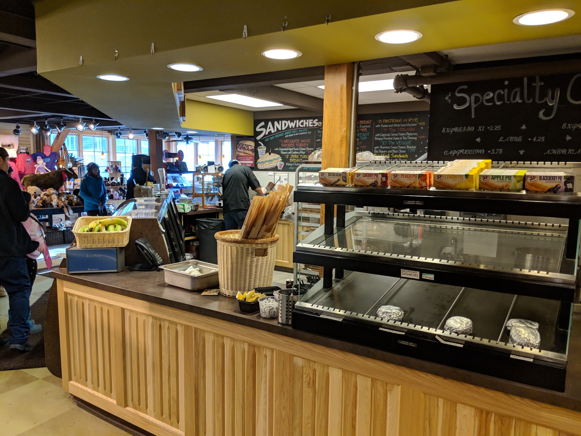 Great conscience store/deli! The cappuccinos are soo yummy. Specifically the caramel cappuccinos. They have everything here. Boars head sandwiches, coffee station, wine, beer, and other goodies/necessities. Also has a nice variety of souvenirs. Great view of the mountain as you sit back and enjoy your cappuccinos!
