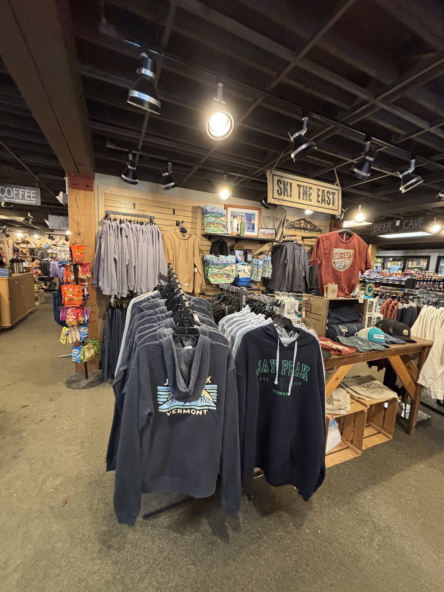 Provisions General Store is a well-stocked convenience store located next to the Tram Base Lodge at Jay Peak Resort. The store offers a wide variety of items, including a deli counter, pre-made salads and sandwiches, a huge array of pantry items, and a selection of souvenirs. Customers appreciate the store's convenient location, friendly staff, and reasonable prices, which are slightly higher than a typical grocery store but fair for the resort setting. The store also features a coffee station with delicious cappuccinos, as well as a selection of beer, wine, and other necessities. Whether you need a quick breakfast, a late-night snack, or something you forgot to pack, Provisions General Store has you covered.