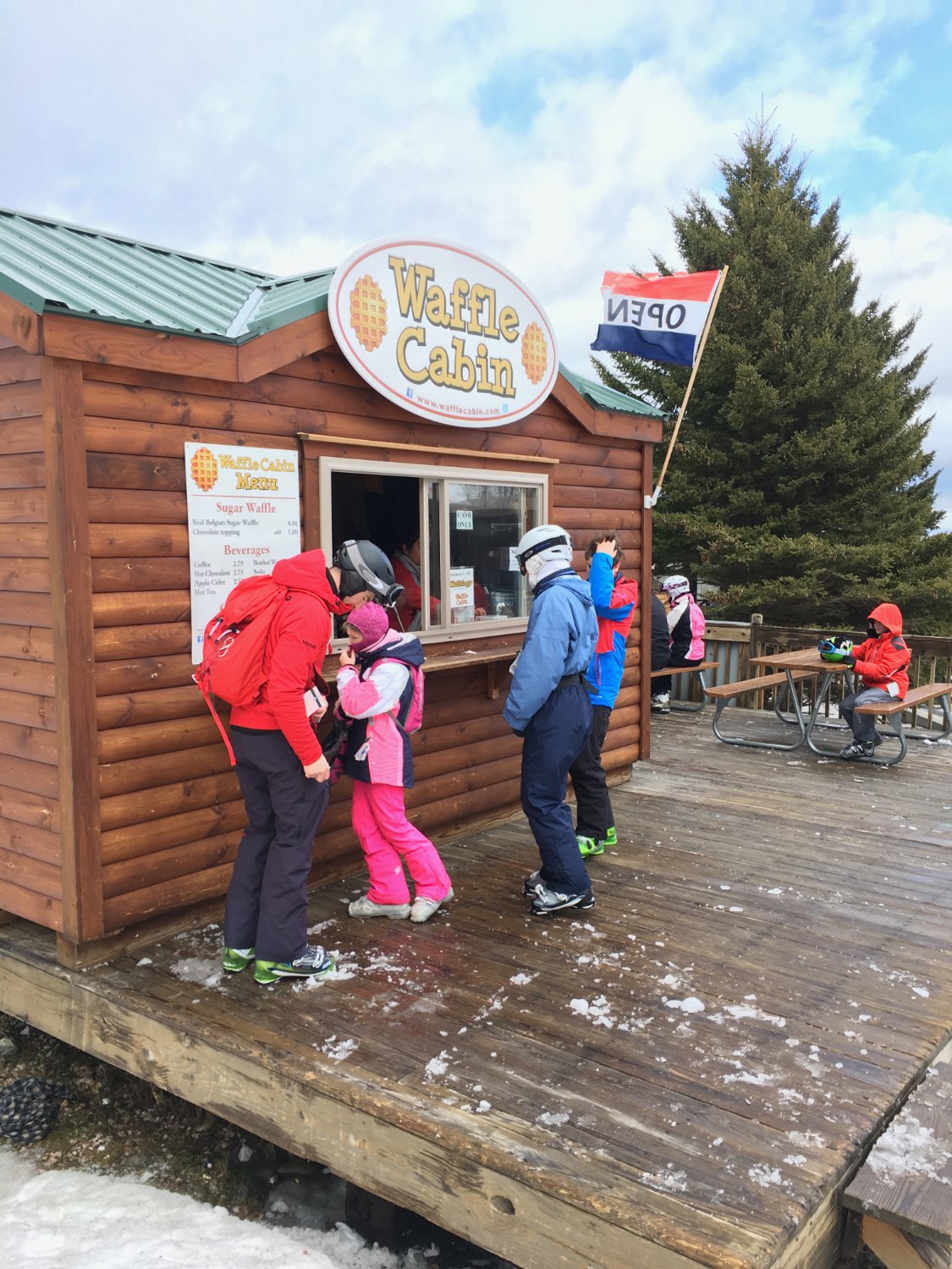 Be sure to stop in on the mountain for a quick snack. It's great to walk up and grab a waffle with a topping so as not to have to stop skiing!