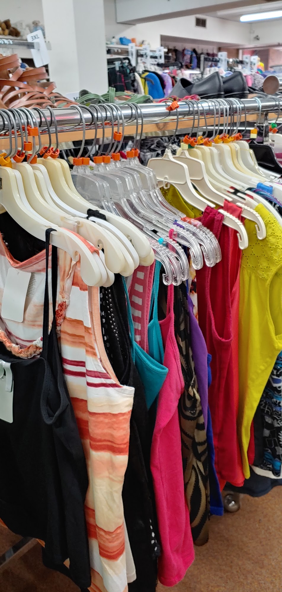 Scampers is a huge, amazing little gem of a thrift store with a sheer volume of inventory squeezed into two floors. It is very clean, beautifully organized, and easily accessible, making the shopping easy. The store offers a fab variety and wide array of men’s, women’s, and children’s clothing, along with new and up-cycled goods. The prices are great, reasonable, and more reasonable than some chains. The staff, store owners, and employees are friendly, helpful, kind, and professional, providing a wonderful shopping experience. It is a place highly recommended for its impressive organization and great finds.