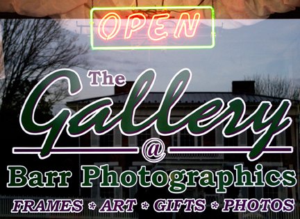 "The Gallery @ Barr Photographics LLC is a custom, archival framing shop; a fine art gallery featuring local, regional and national artists; an upscale gift shop and provider of photography services. Established in 1986, The Gallery @ Barr Photographics LLC hosts six feature artists per year; is a purveyor of original wall art, sculpture, lithographic prints and is a producer of custom giclee canvas and paper prints. Utilizing a combined design and custom framing experience of over fifty years, the Gallery @ Barr Photographics LLC is equipped to handle any project large or small. Stop by...You may find something you can't live without!"